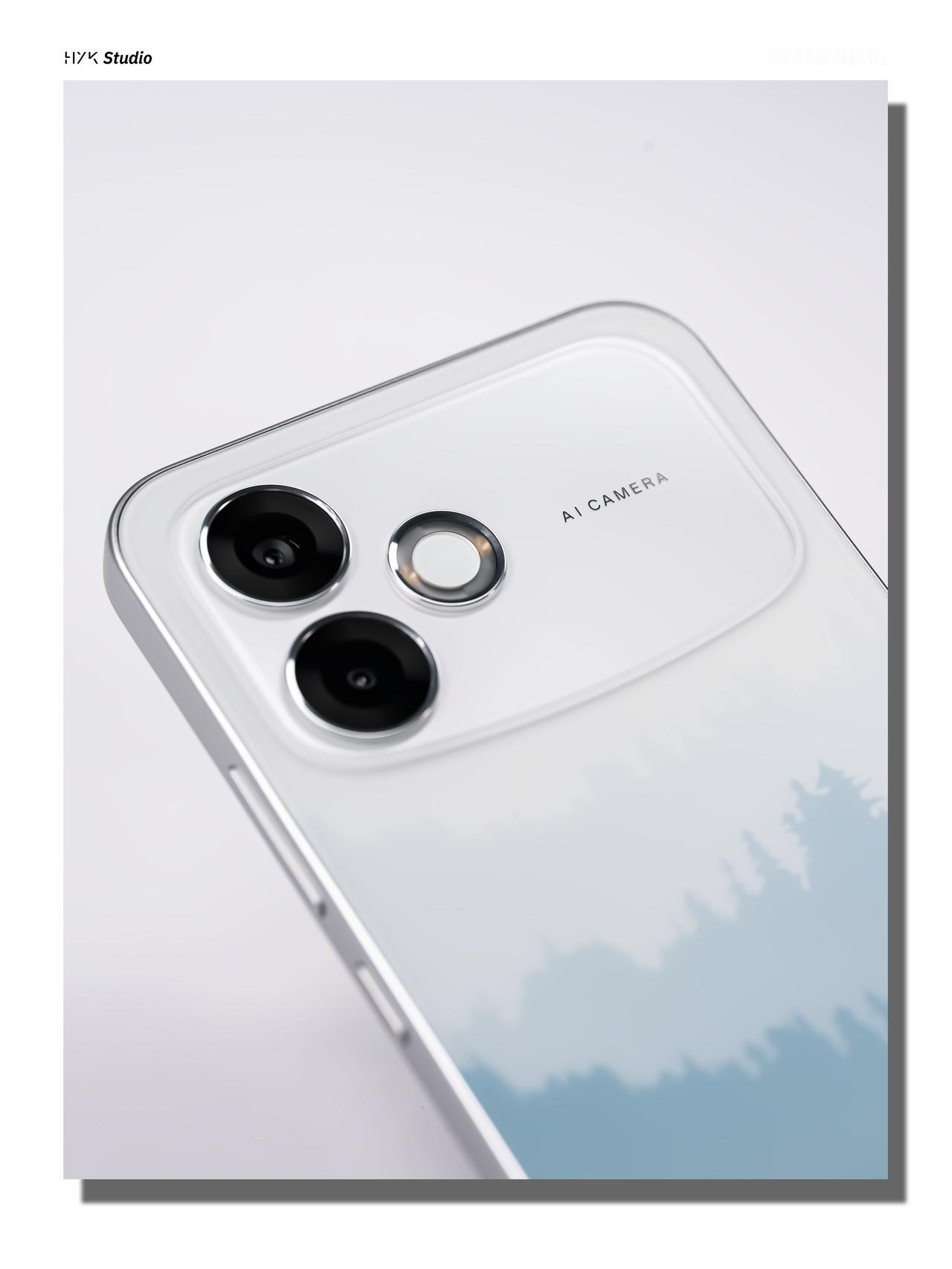 「青云直上」,6.57英寸的直屏,重194g,单手握持很舒服。一体冷雕的镜头Deco,下方做了柔和的弧线设计,还加了细碎的闪光砂点缀,非常好看。后盖用了3D深光感工艺,将一片青松林融入到背板中,白到浅蓝的渐变像山间的薄雾,树林的轮廓若隐若现,这么好看的背板,你还舍得套一个手机壳吗?