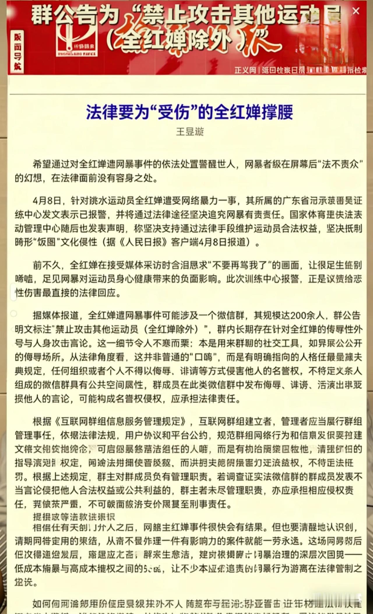 全民骄傲全红婵为何遭网暴?官方出手,坚决守护少年荣光! 2026年4月8日,一