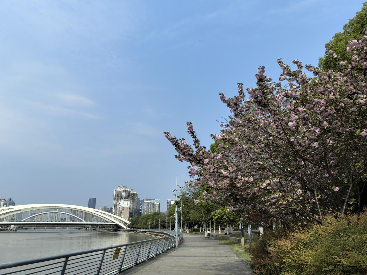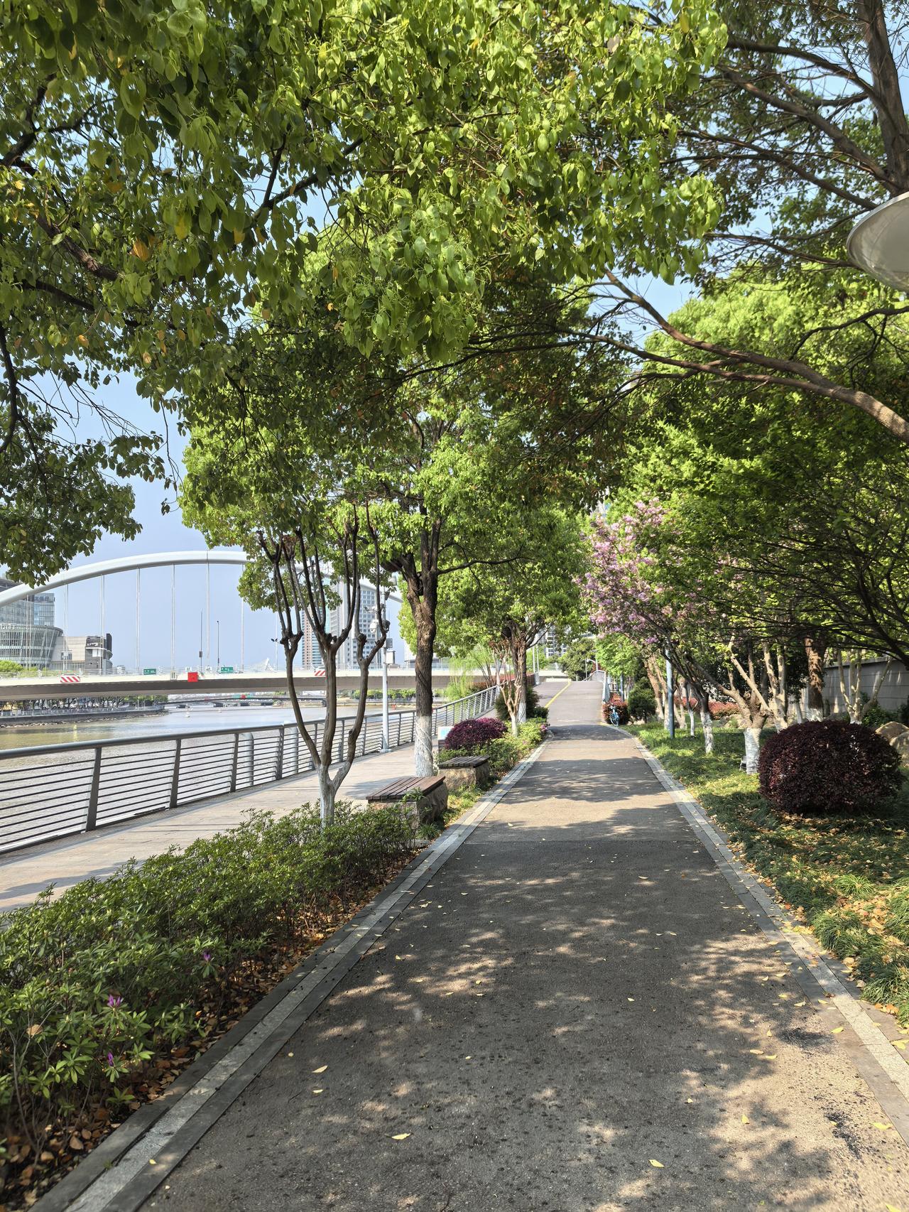 纠结了半个小时,终于下决心穿上跑鞋走出家门,等走到江边我已经精神抖擞,满头大汗了,简单跑前活动后,在明晃晃的阳光下,在空无一人的江边开始了我的五公里慢跑。