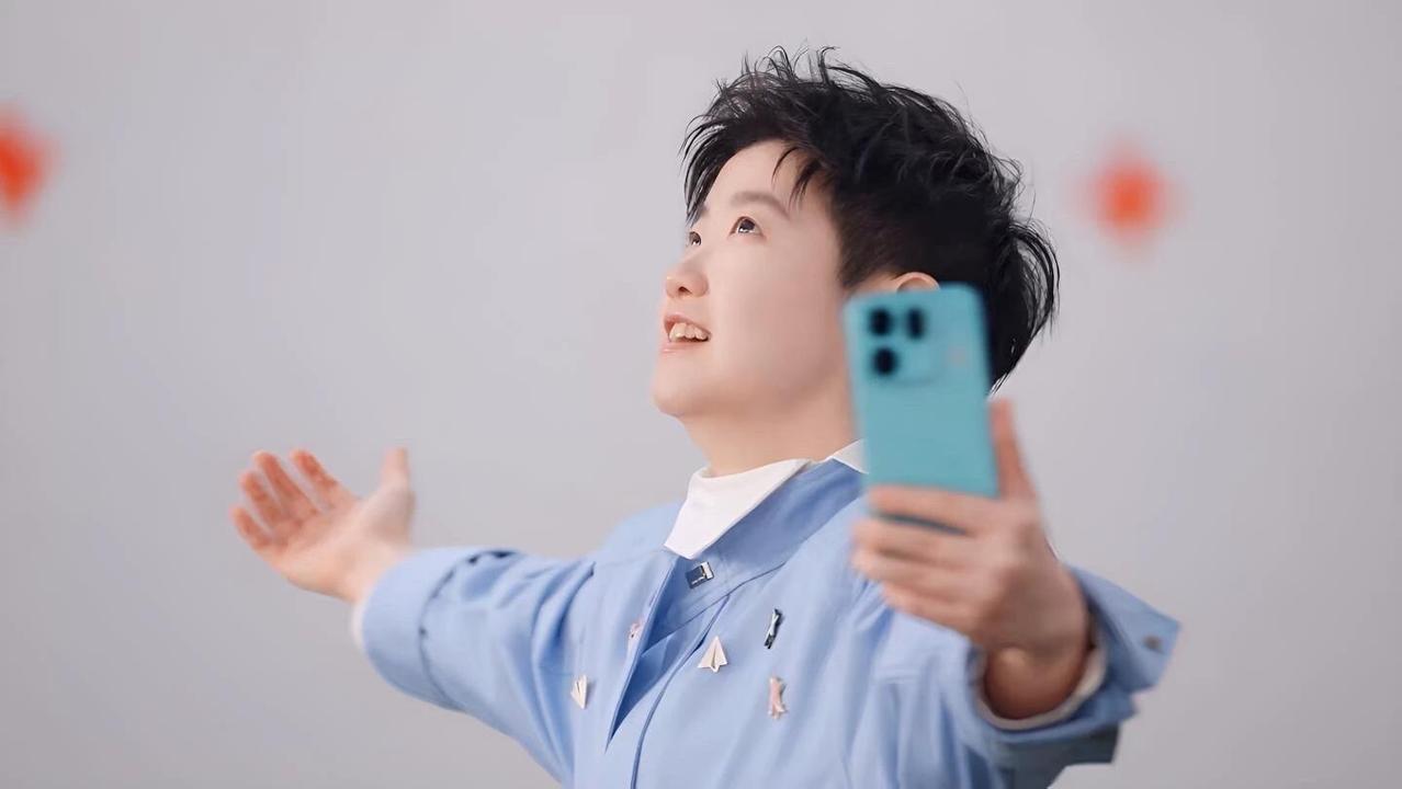莎莎用上新手机了,天空青色,今年青色好,很适合今年,莎莎代言就是要用新款!