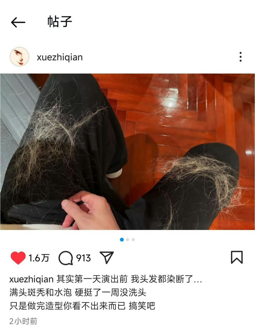 薛之谦满头斑秃和水泡 为了舞台完美,反复漂染头发,导致头皮灼伤起水泡,大片斑秃,硬撑一周不洗头,却因为大雨承诺退钱。老薛也是不容易呀!