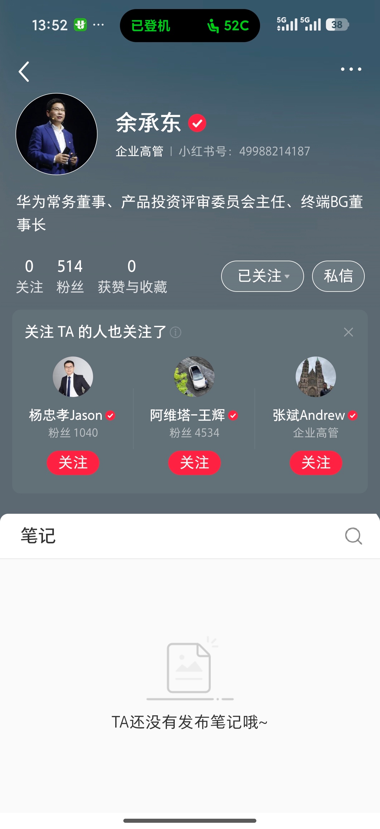 华为的余承东和何刚入驻小红书了,看来也要重点关注女性用户市场了,小红书女性用户玩