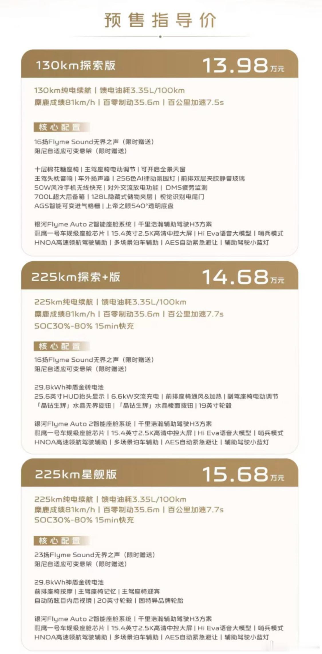 吉利银河M7预售价来了:13.98-15.68万,这车的核心亮点就是省油、省油、