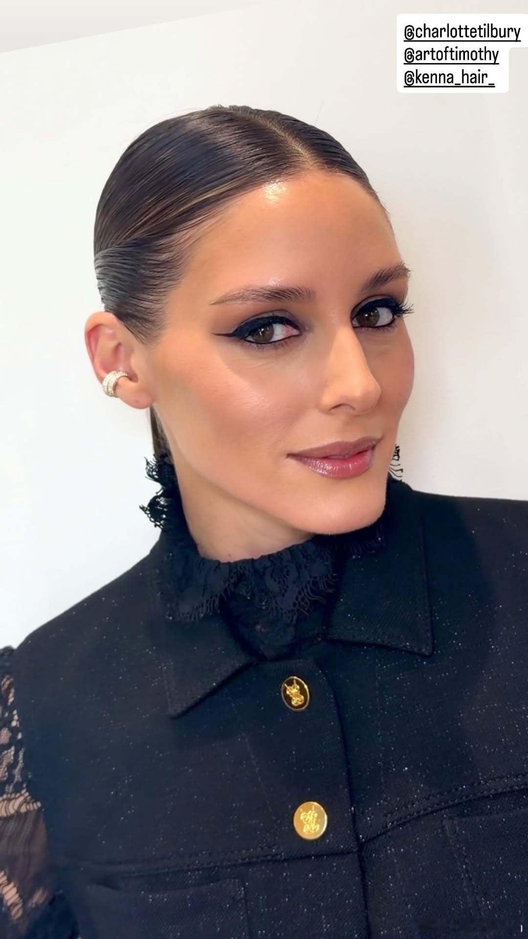 Olivia Palermo奥利维亚巴勒莫出席纽约婚纱周观看乌克兰婚纱品牌Milla Nova时装秀的妆造,再次用全包眼线强调深邃双眼