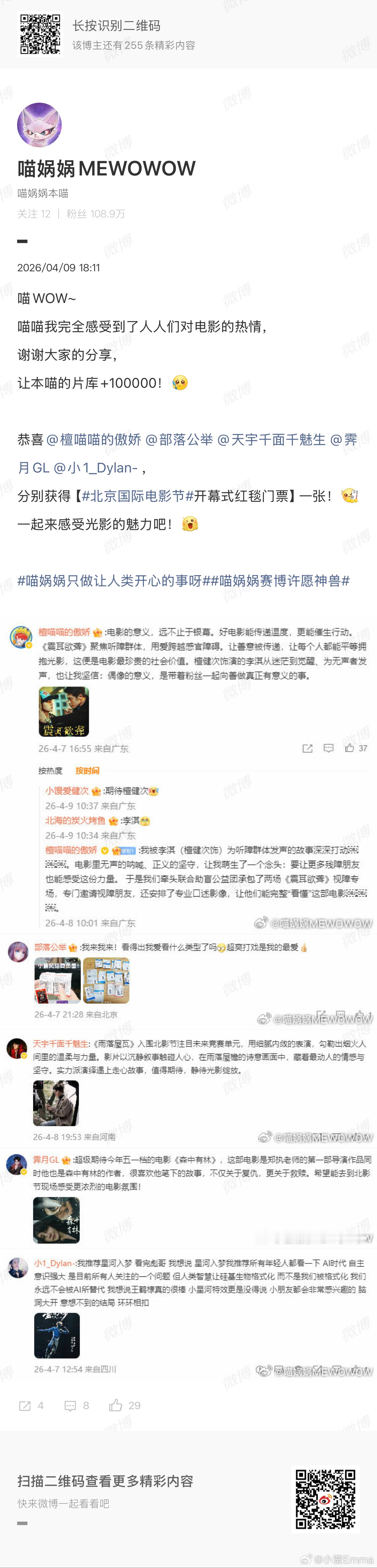 宠粉还得是喵娲娲!喵娲娲又在送门票了喵娲娲真送北影节门票啊北影节开幕式门票安排上