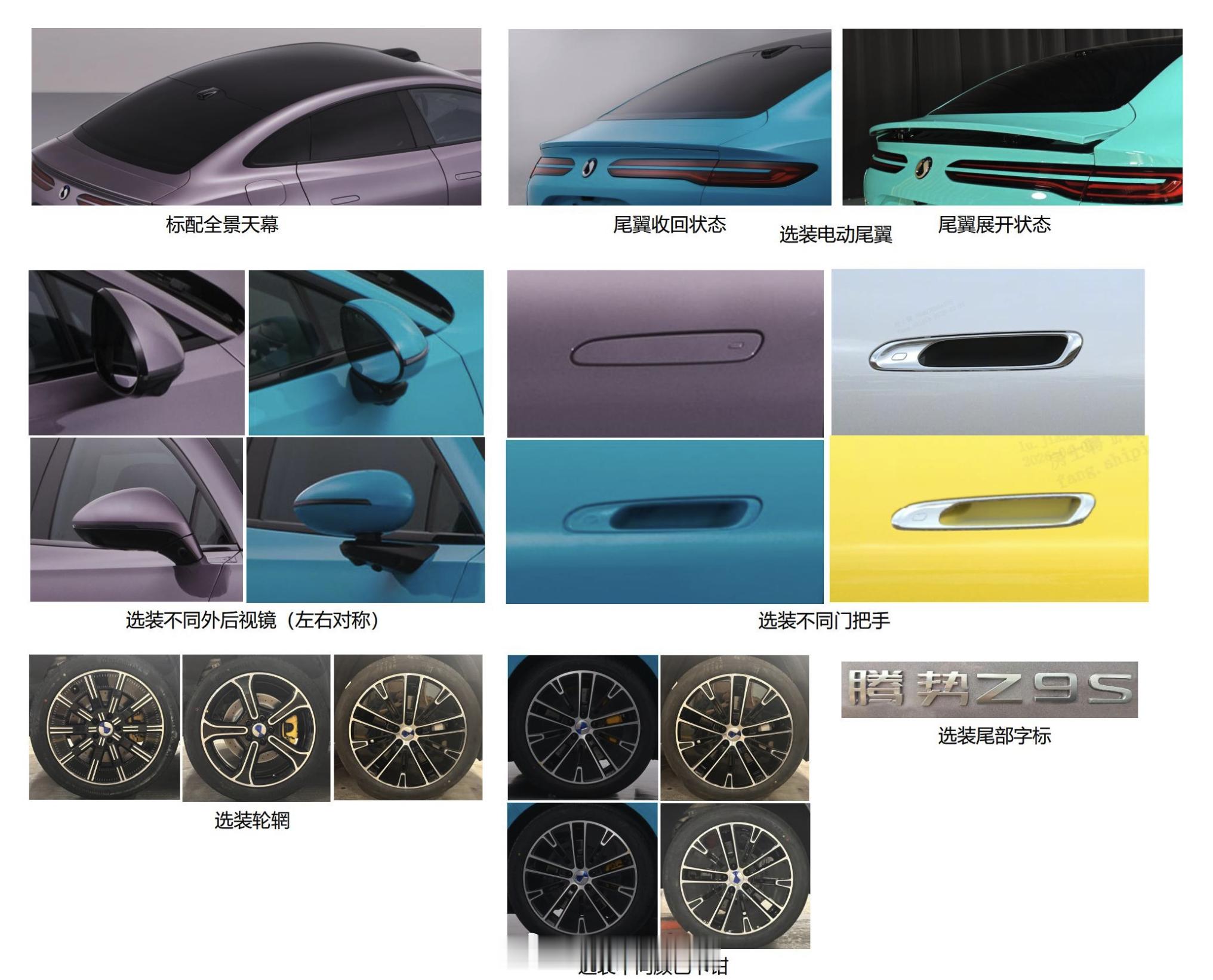 腾势Z9 原来还有轿车,申报图用的浅蓝色,还是能凸显轮廓的。至少还有紫色、灰色、绿色、黄色可选,门把手可选择全隐藏和半隐藏。