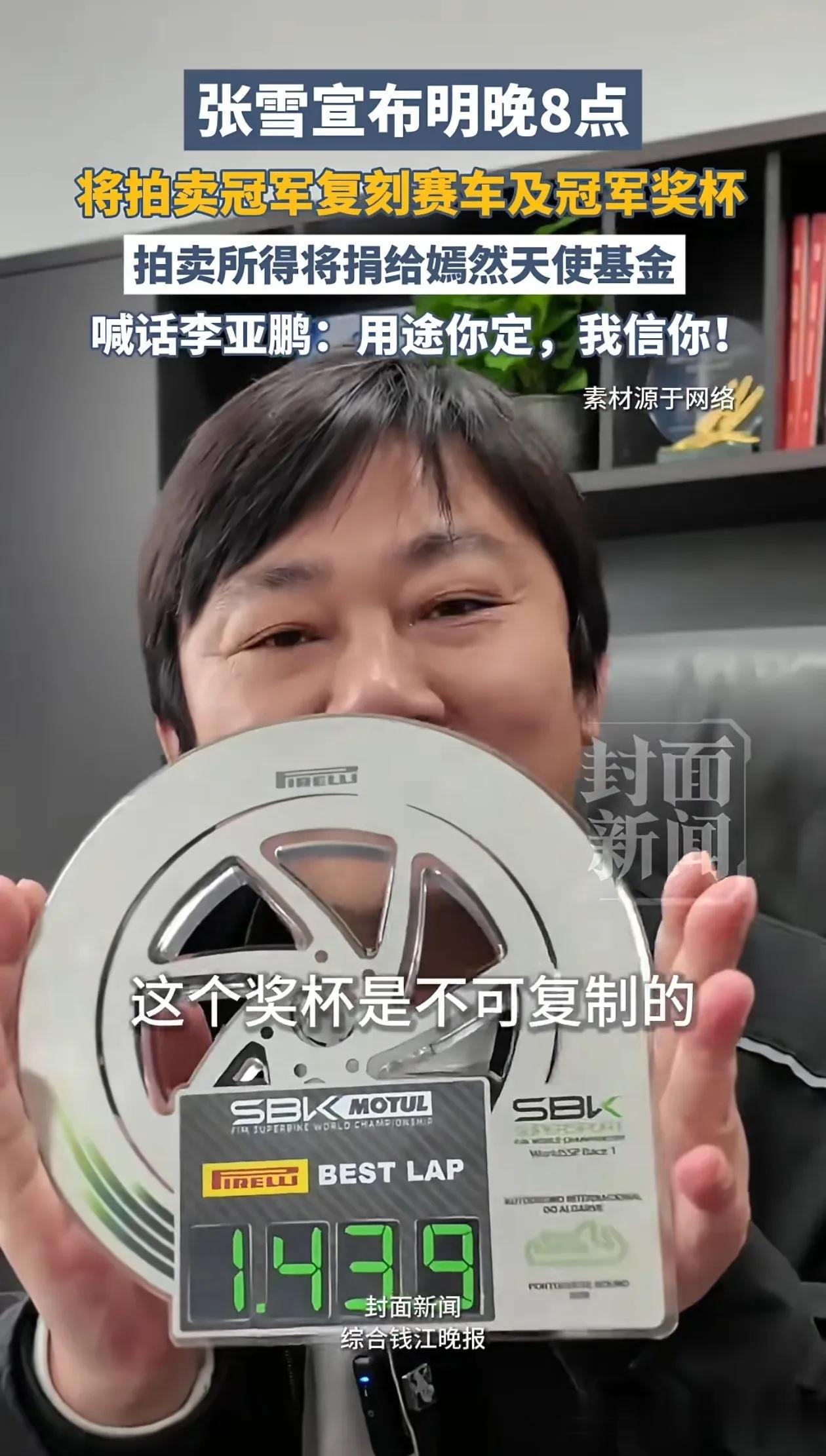 如今张雪更是打算将自己的夺冠机车820rr复刻版进行拍卖,起拍价40万,重点是,本次的拍卖所有的金额将全部交给李亚鹏本人进行自由支配,没有任何的设置条件。