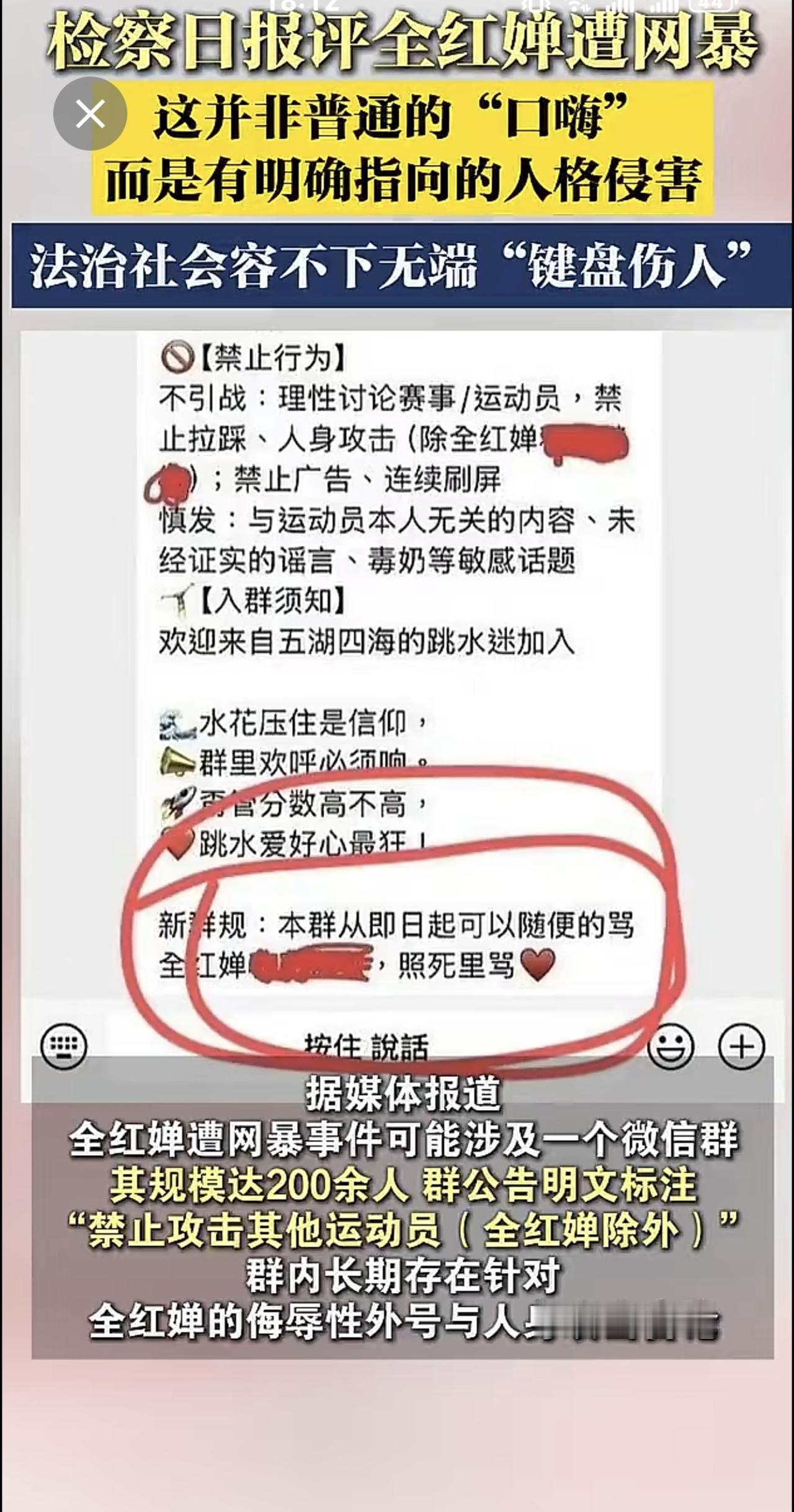 检察日报评全红婵遭网暴:这是有明确指向的人格侵害,法治社会容不下无端“键盘伤人”