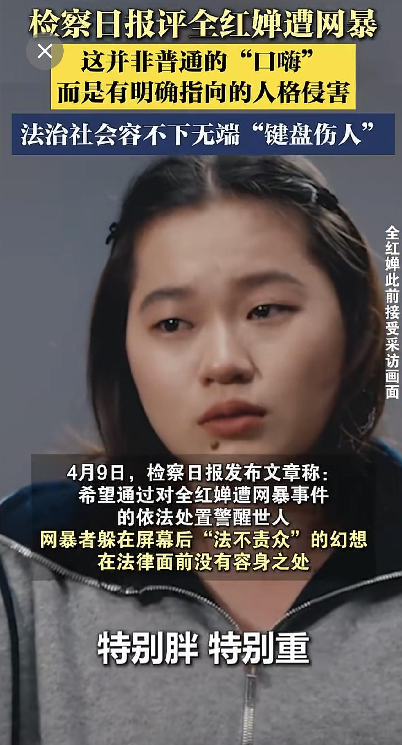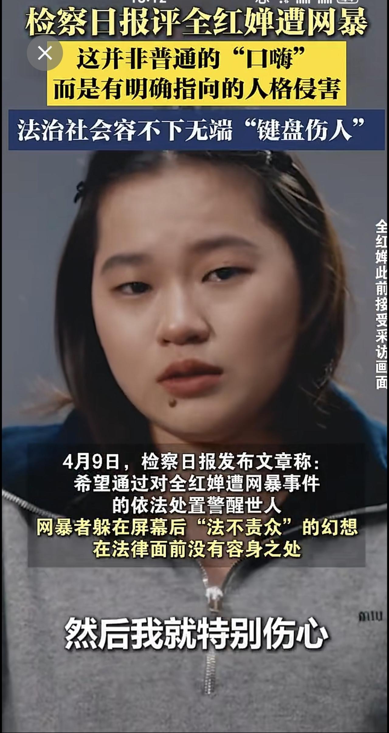 检察日报评全红婵遭网暴:这是有明确指向的人格侵害,法治社会容不下无端“键盘伤人”。网暴 全红婵 侵权 (来源:人民日报、检察日报、新法治报)