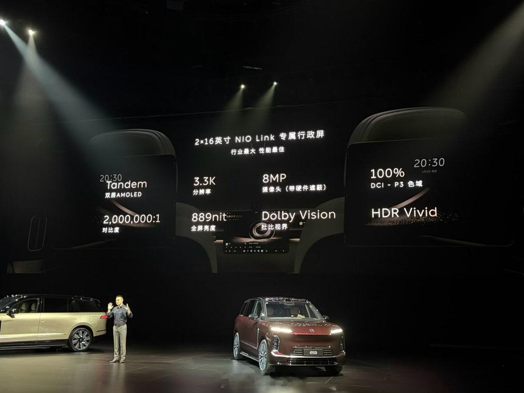 蔚来 ES9 上首发了专门定制的车载会议功能还做了很多小的设计优化设计,智能补光