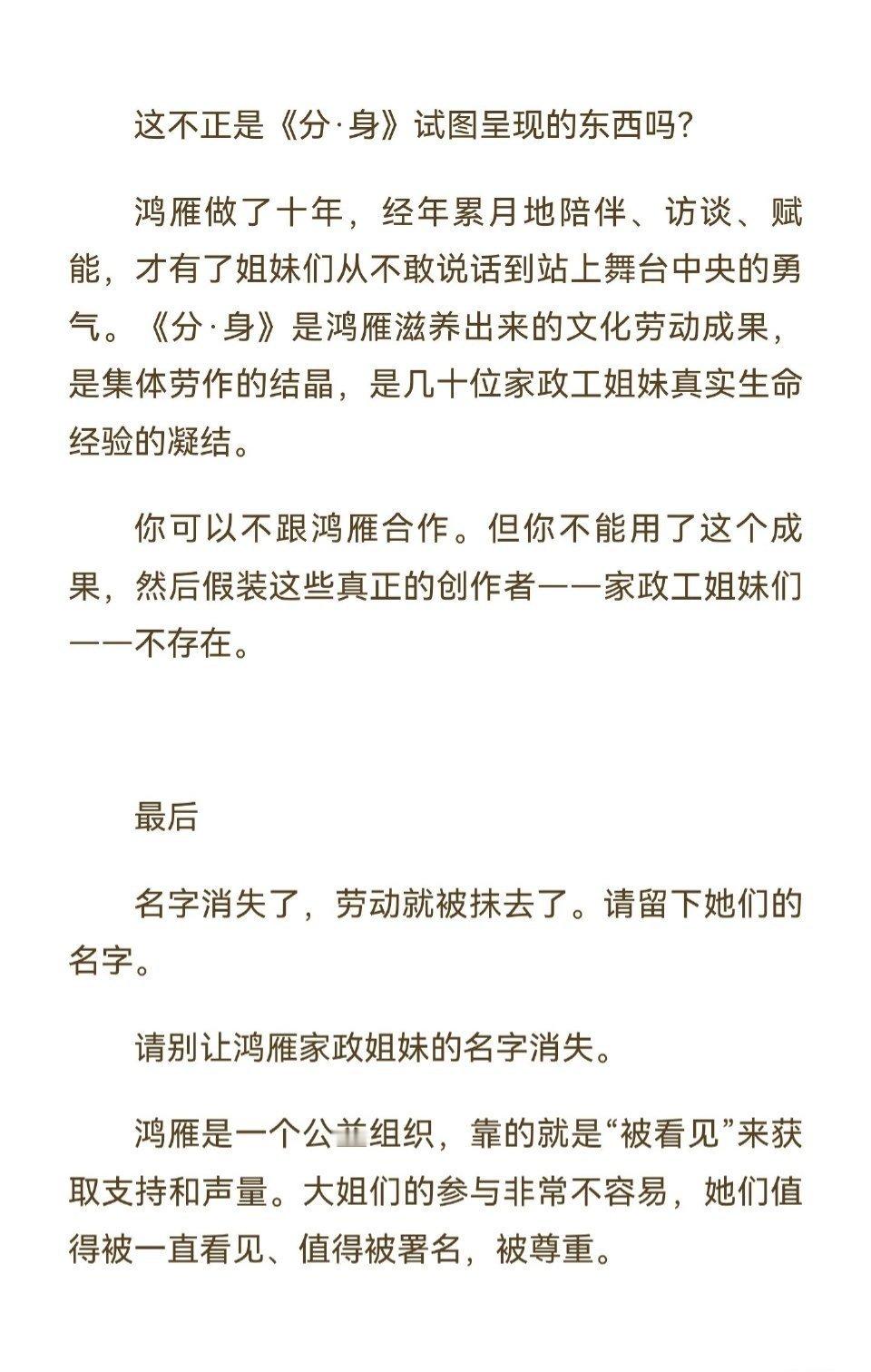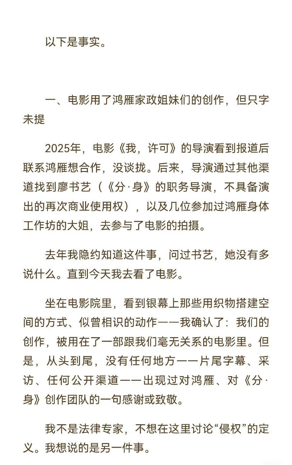 听说最近热播的文淇、秦海璐新电影《我,许可》被指疑似侵权鸿雁社工的舞台剧《分 · 身》是真的吗?