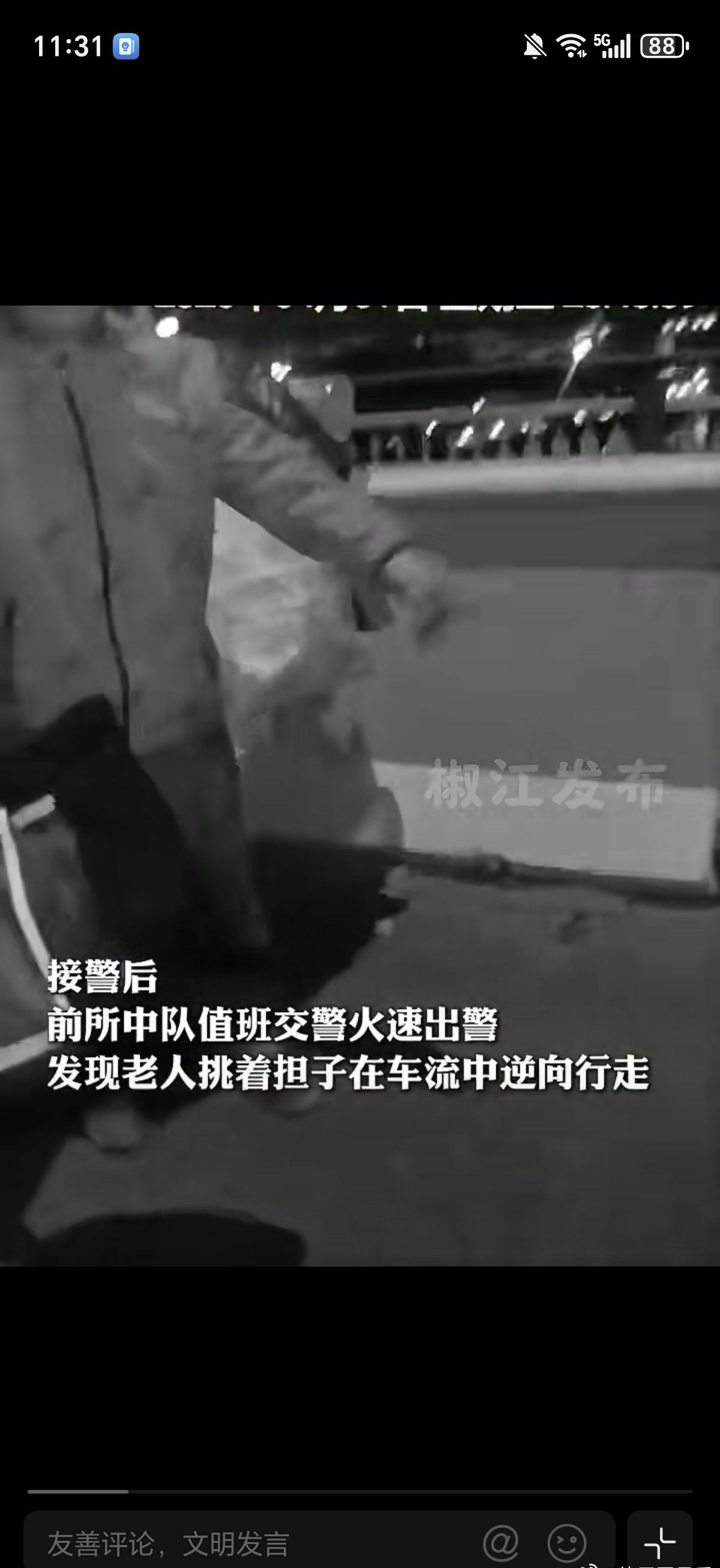 七旬老人挑担逆行台州交警助力回家交警耐心劝说老人坐上警车,途中一直和老人讲解夜间在机动车道逆行的危险。