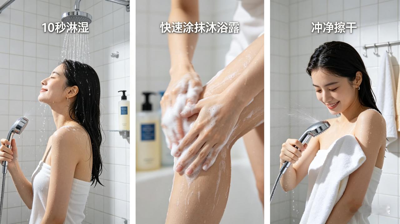 这位曾主演多部热门剧集的女星,现场还原了她的"速战速决"式沐浴流程:10秒淋湿身体→快速涂抹少量沐浴露→重点清洁关键部位→30秒冲净→立即擦干,整个过程精确到秒,如同执行军事任务。她还透露,每天早上只用冷水快速冲脸消除浮肿,连洁面产品都很少使用。