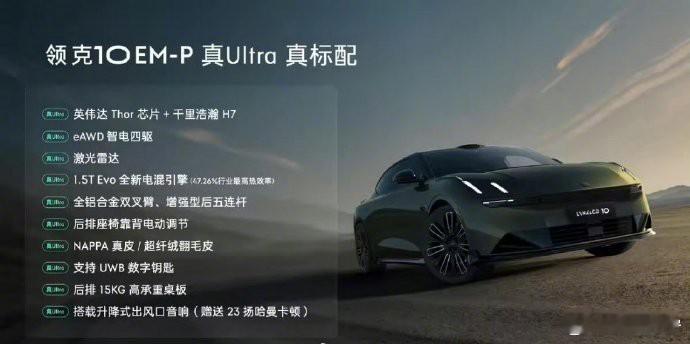 探索未来驾控之境,体验前所未有的动力与节能。搭载EM-P®智能电混技术及eAWD智电四驱系统,中大型插混轿车以390kW最大功率和5.1秒破百的惊艳表现,让每一次加速都充满激情。即便在低电量状态下,油耗也仅为4.2L/100km,高效与性能的完美结合,引领您进入全新的驾驶境界。领克10EM-P全系四驱索尔太顶了