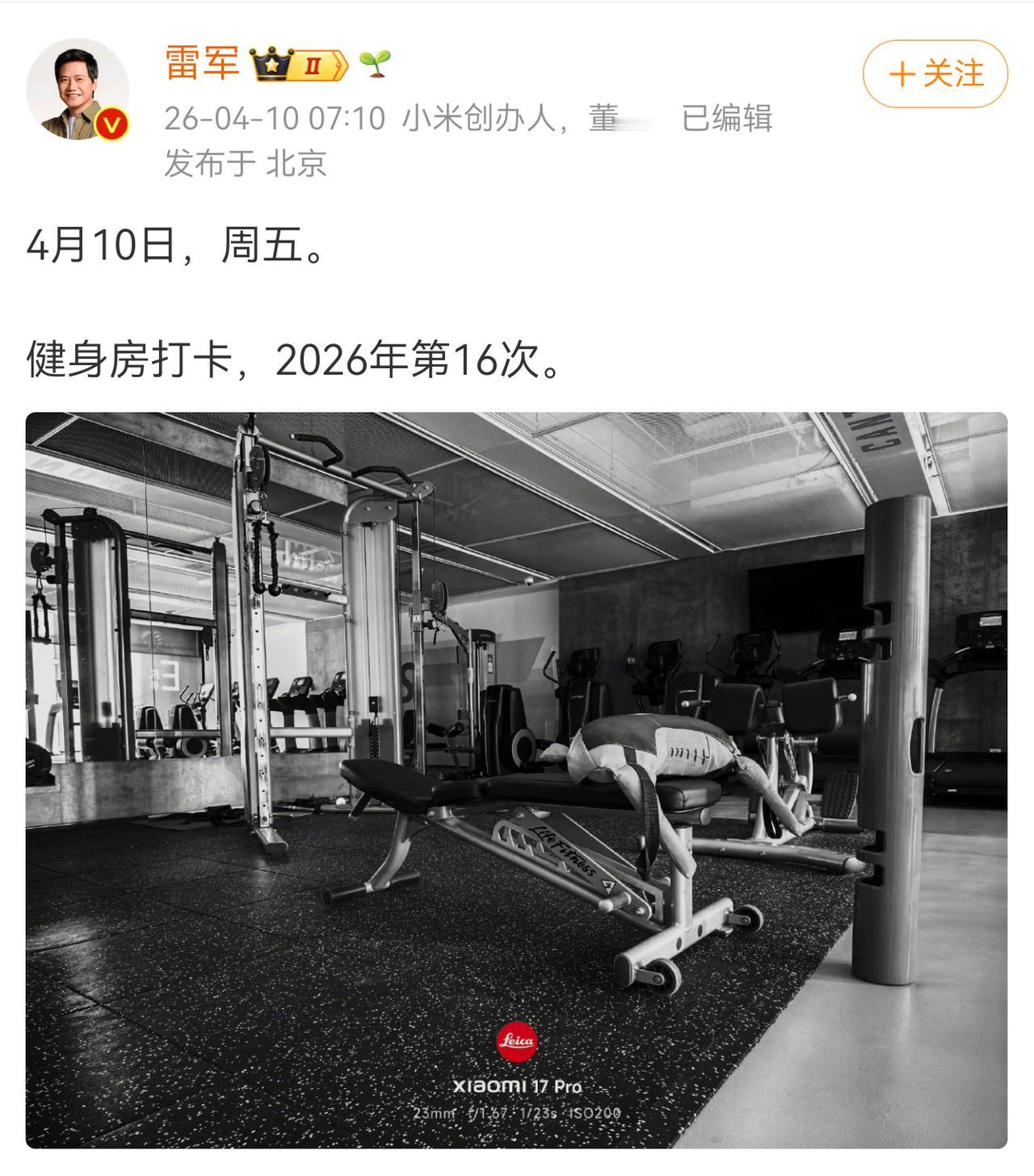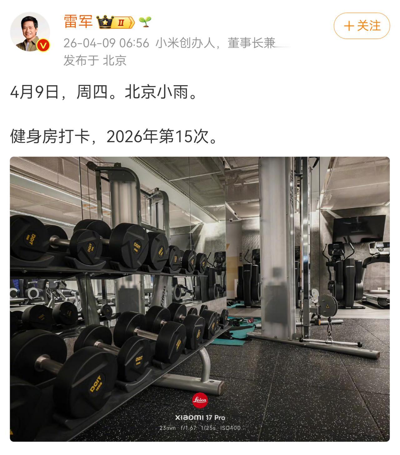 雷大老板连续三天健身房打卡,附带三张健身房(器材)照片。时间都是早上7点左右。