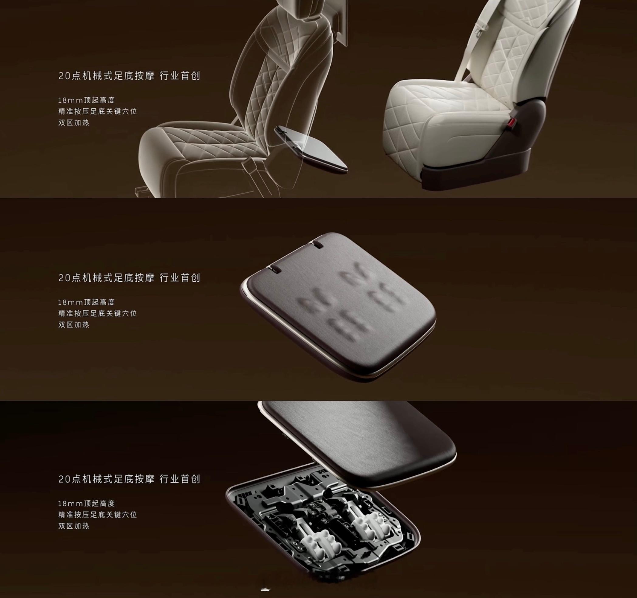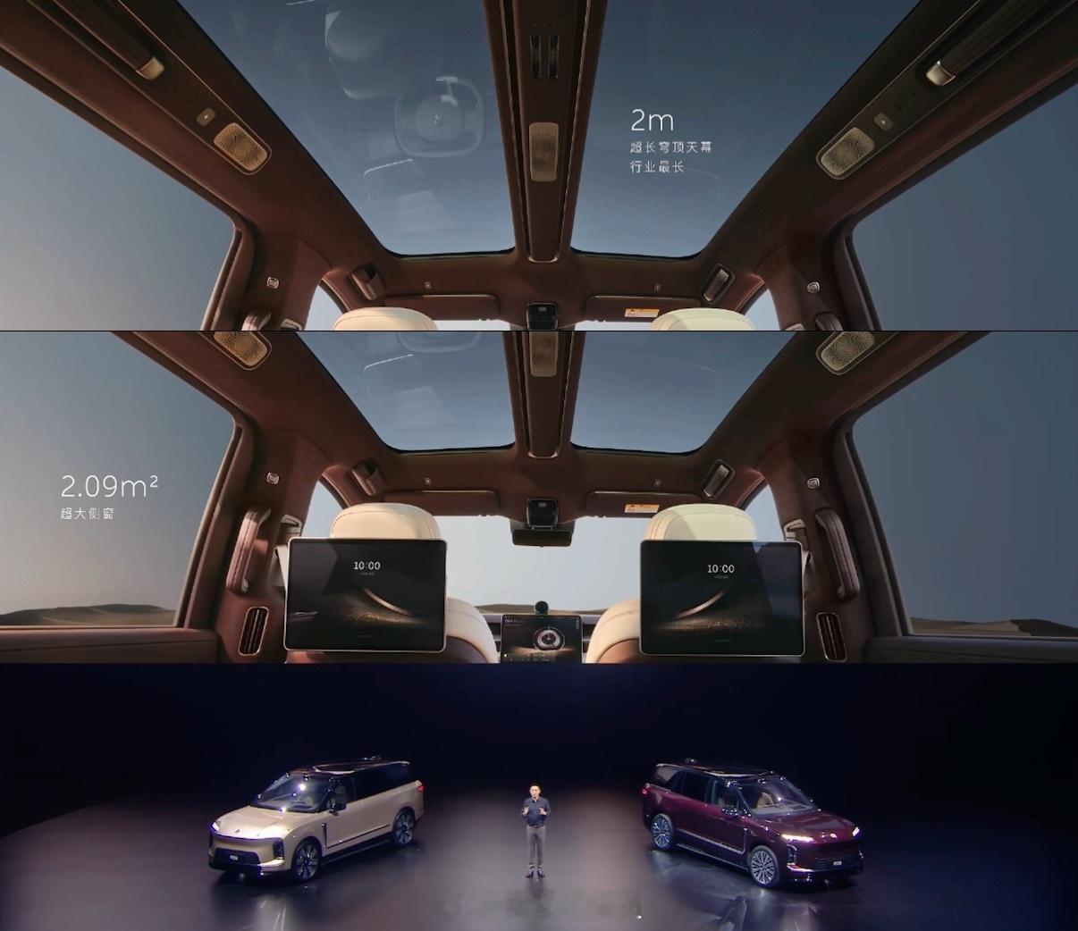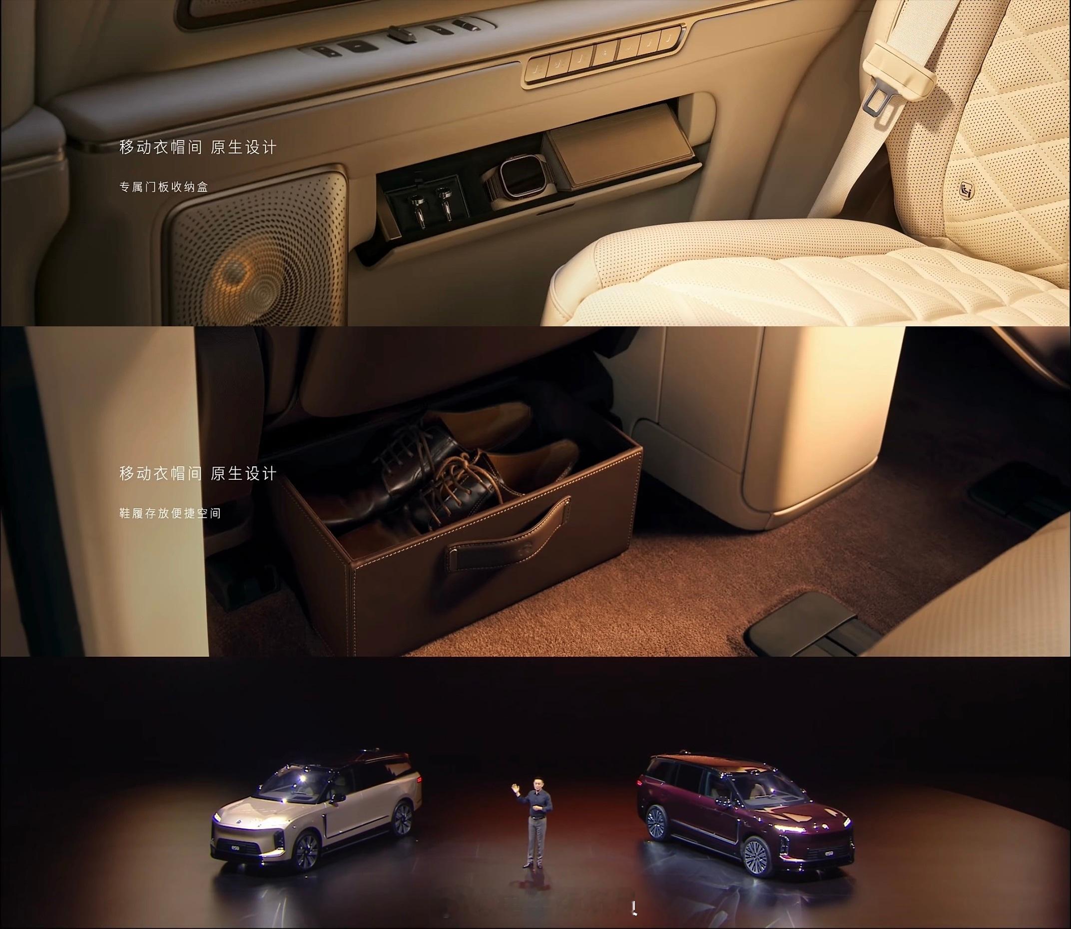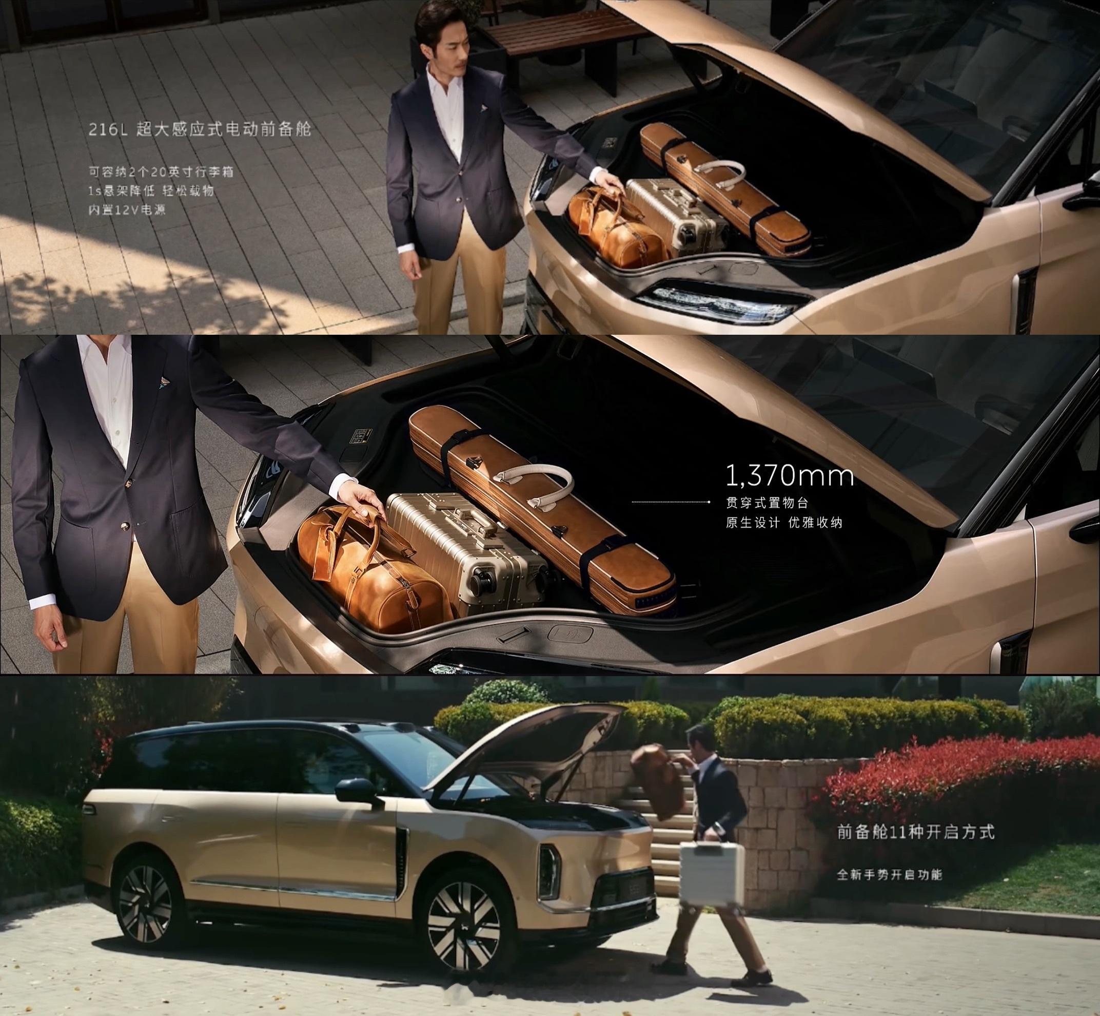 1️⃣车长5365,高度1870,内部空间绝对领先。2️⃣三排超大六座,每一个座位都宽敞。3️⃣座座都宽大豪华,座座都是MVP。4️⃣前备舱+后备箱容积超过810L,6人13箱。5️⃣全主动悬挂,提供顶级舒适性。6️⃣天空岛设计开扬感更强,还有极致的隐私性。7️⃣精心设计的储物收纳,取放都从容优雅。