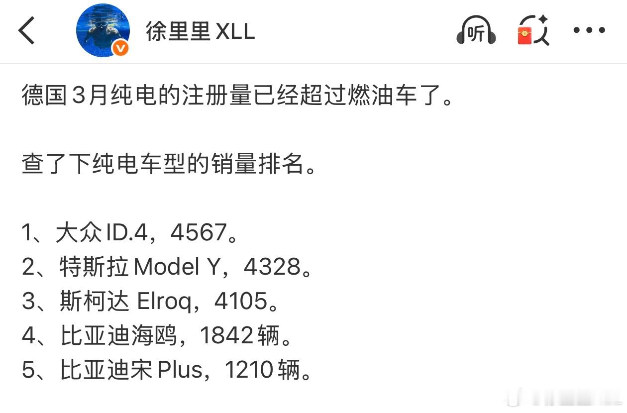前几天,我为了图省事,直接在AI那问的德国3月纯电车型的销量。未经求证就直接发出来了,图1。