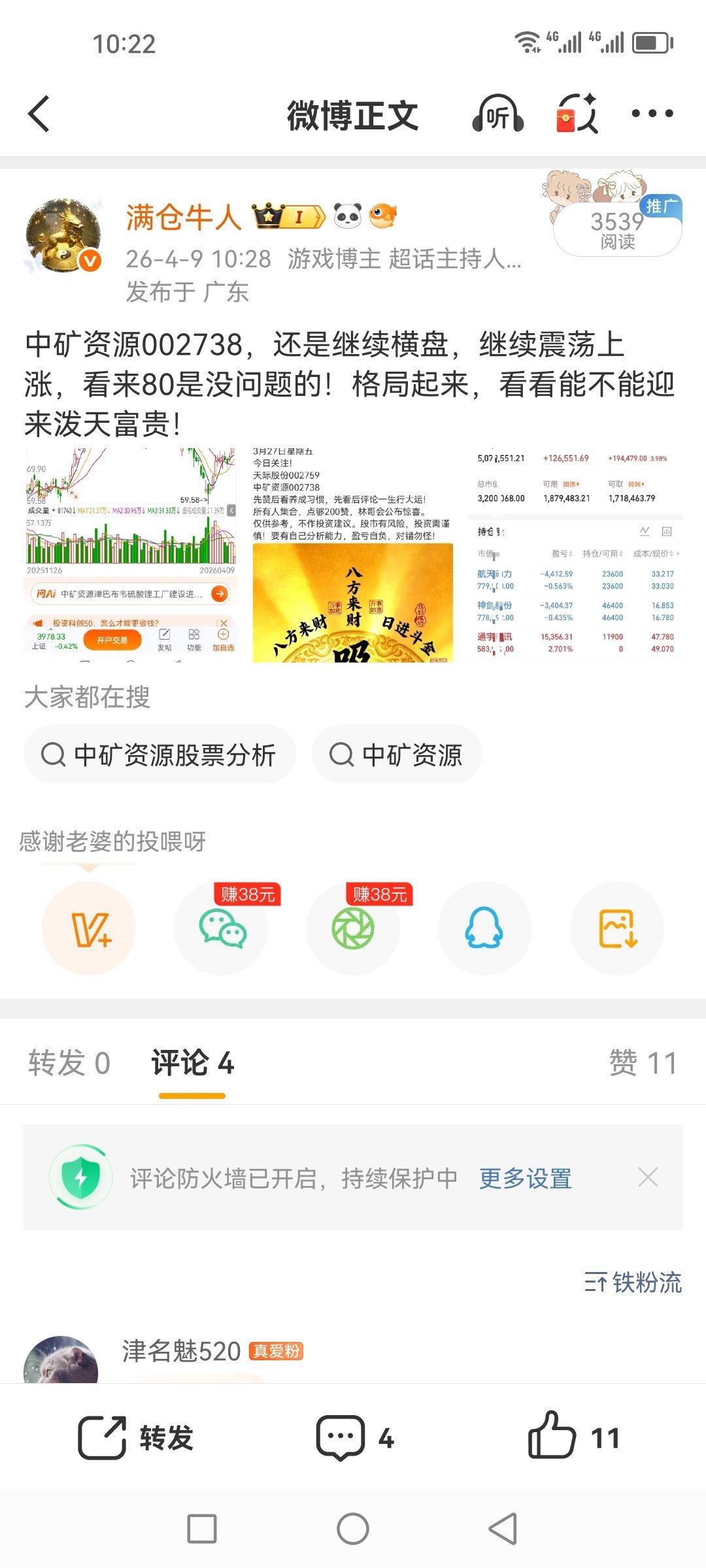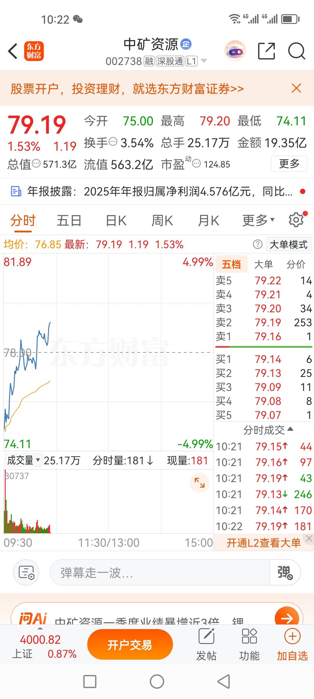 中矿资源002738还在涨哦,我说过,会超过八十,看来今天又离八十更近一步了!