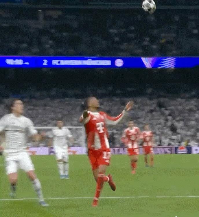 隔壁一天,皇家马德里对拜仁慕尼黑。补时阶段,拜仁前锋奥利塞在禁区里胸部停球,被皇马后卫卡雷拉斯从后头又撞又绊,直接撂倒了!