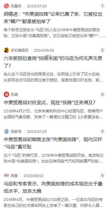 可事情并没有随着马臣消失而结束。2023年、2024年,他的那篇投降文又被网友翻出来“鞭尸”,而且热度反而比当初更高了。为什么?因为人们回头看2018年马臣说的那些话,发现几乎每一句都被现实打脸了,这种反差实在太强烈。一个在2018年断言中国必败的人,七年之后被中国实打实的发展成就不言自明地驳得体无完肤。