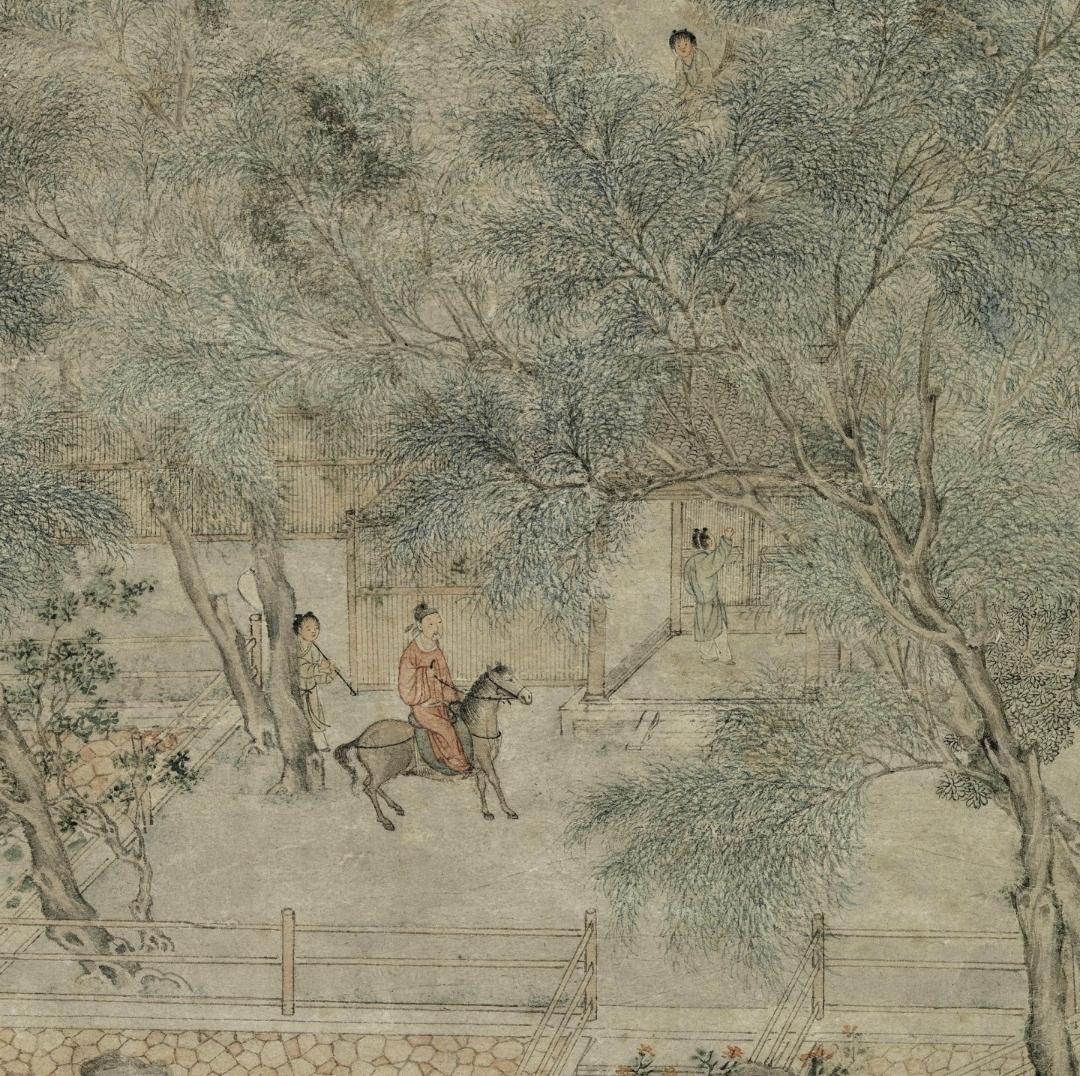 ✅ 柳荫下文人骑马赴宴,庭院里小厮忙前忙后,烟火气拉满