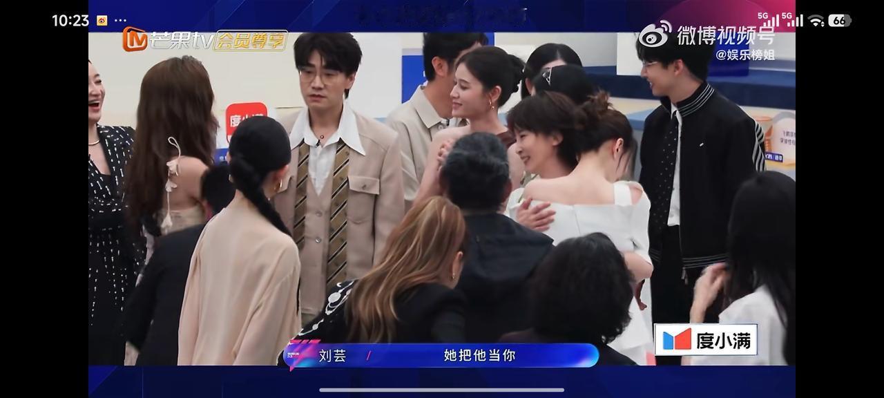李小冉看到阿兰图雅老师连忙热情打招呼,为了表现自己对他的歌的喜爱,唱了一句“套马的汉子”。