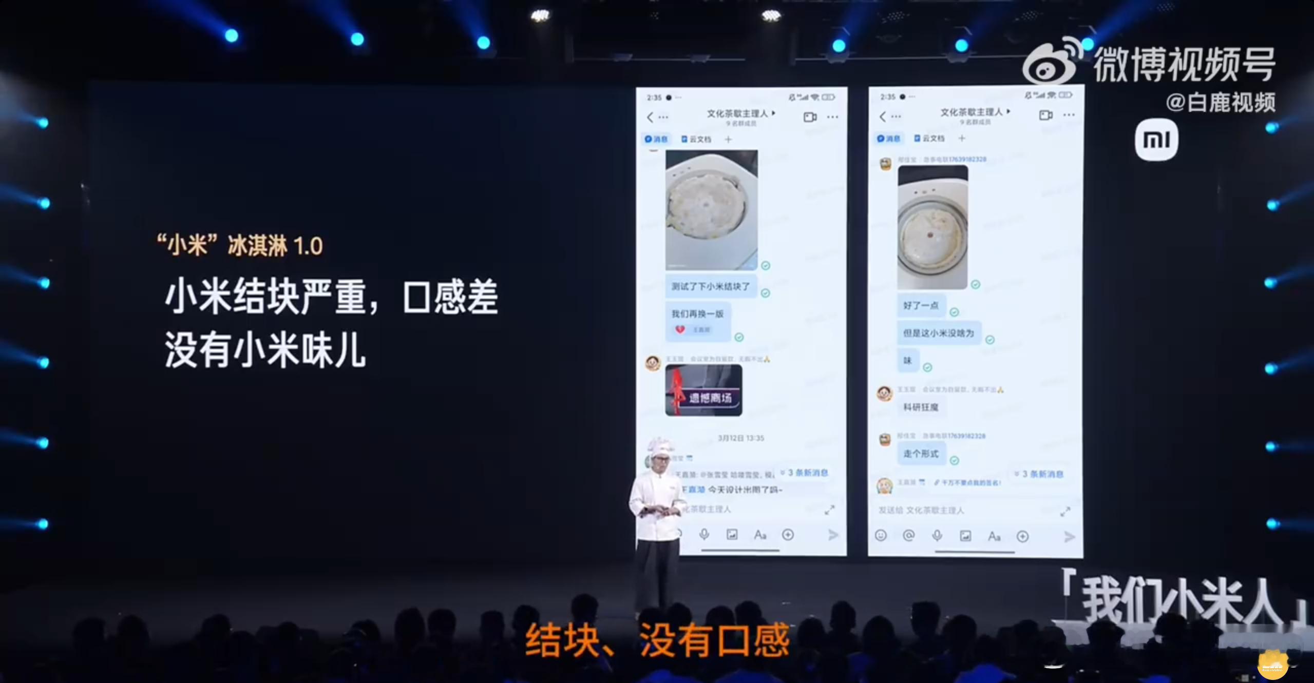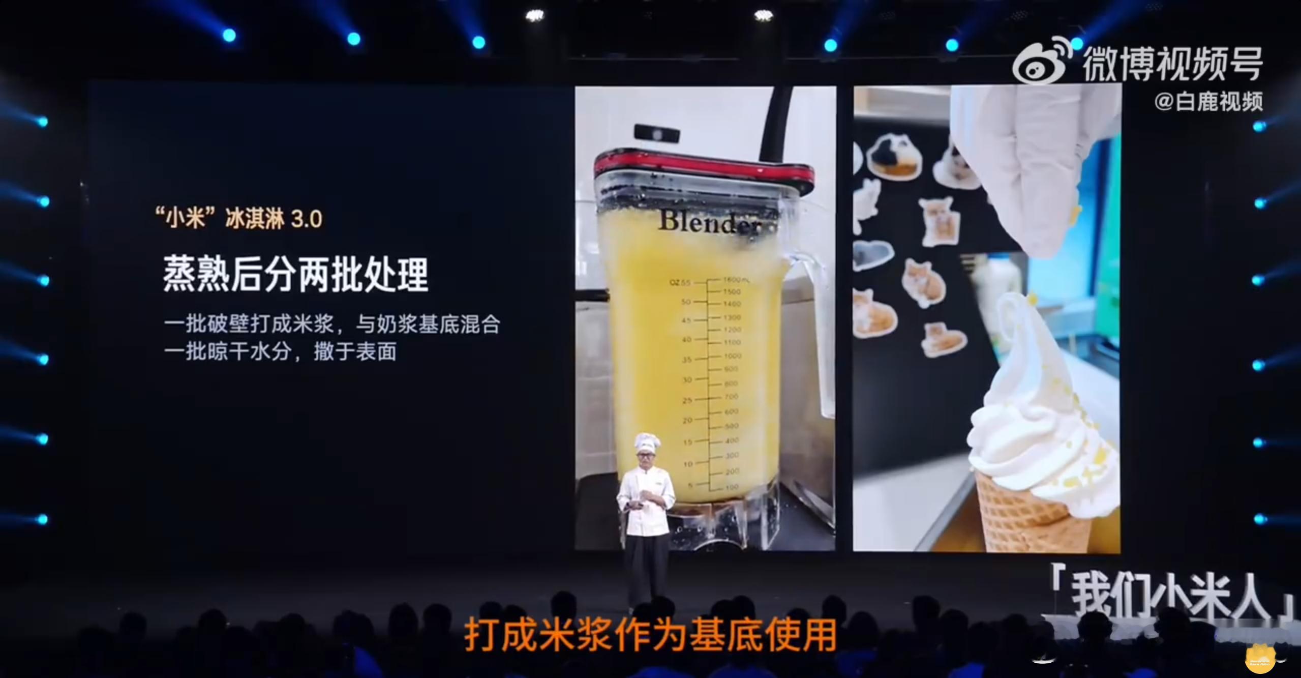 小米冰淇淋真有小米 大家还记得两年前小米食堂爆火的大麻花吗?在今年的员工大会,这位食堂大厨又一次站上了演讲台,给大家分享小米食堂的全新产品,小米冰淇淋。