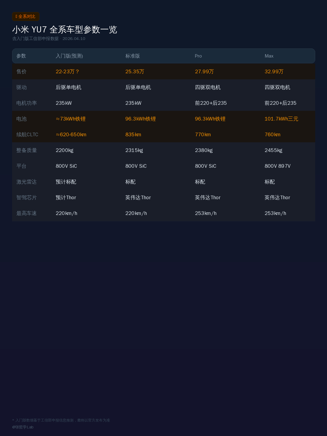 A7888小米YU7入门级版本工信部申报了。对,比现在25.35万的标准版还要低