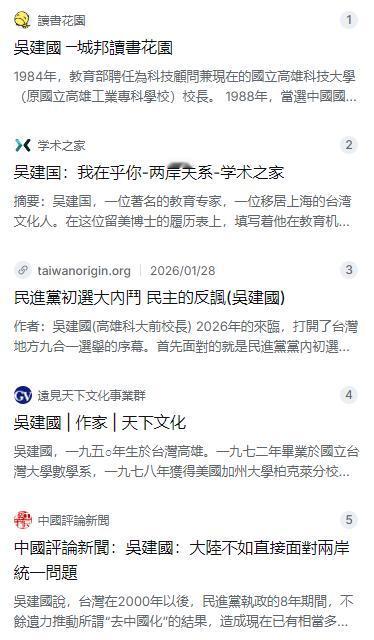 吴建国这个人,在岛内其实不算什么大众明星,但在学术圈和政治圈里是个老面孔。他祖籍江苏苏州,但出生在台湾高雄,而且一直以“外省子弟”自居,口音里带着那股苏南的腔调。1972年从台湾大学数学系毕业后,他漂洋过海到美国加州大学伯克利分校读博士,拿的是材料科学学位,在劳伦斯国家实验室和硅谷都干过工程师。1980年他选择回台湾,一头扎进了还在筹备中的中山大学,帮着搞建校工作。1984年,他直接被任命为高雄应用科技大学的校长,这一干就是不少年头。那个时候的他,更多的还是一个学者和教育家,搞的是半导体和材料工程,跟政治沾边不深。不过他的轨迹一直在悄悄变化,1988年当选了中国国民党的中央委员,1991年又高票当选了高雄市的“国大代表”。从这些履历来看,吴建国骨子里是一个典型的老派国民党精英,接受过正统的美国科研训练,同时也有很深的中华情结。这几年他逐渐把重心从校园转到了两岸事务的研究上,甚至在耶鲁大学专门搞过两岸关系课题。他的思考路径很明确,就是从教育和科技出发展望统一,试图找一个能让台湾社会不那么害怕统一的具体方案。