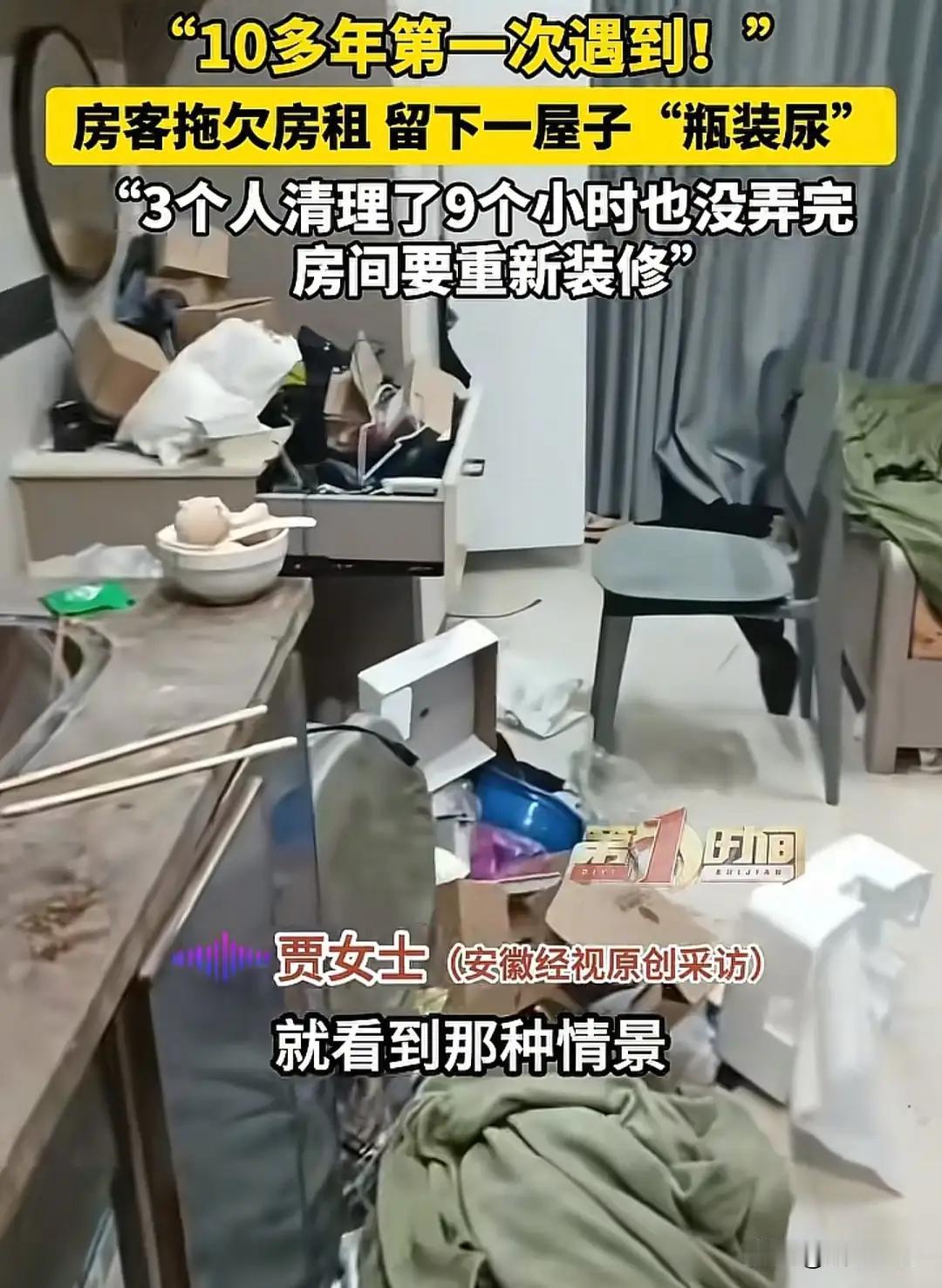 在前久报道的一租客欠房租5千元。没有付房租费逃离,房东打开房间门,里面尽全是用瓶子装满尿液,有上千斤。后面房东报警,警方通过租客信息找到了租客,租客说是所欠房租5000元会付,但是由于近期手头紧,拿不出。