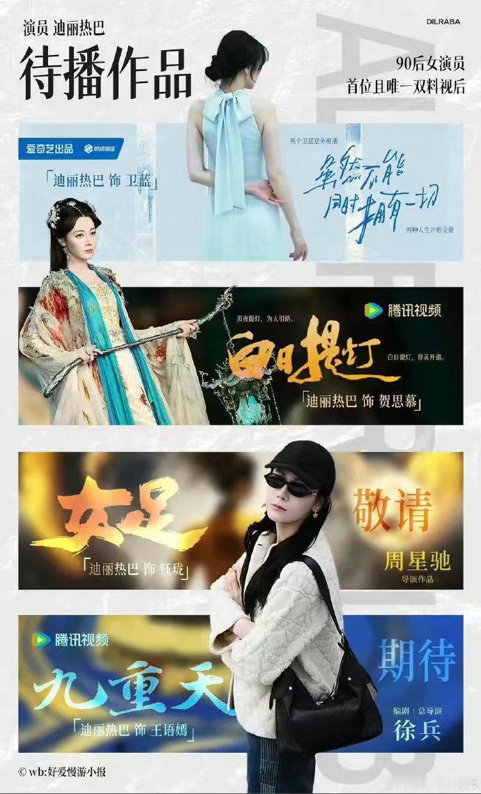 迪丽热巴电视剧电影两手抓迪丽热巴三部待播作品 迪丽热巴电视剧电影两手抓,迪丽热巴三部待播作品:《虽然不能同时拥有一切》《九重天》合电影《女足》 ,我看看是谁还没有期待住热巴的新剧呢!