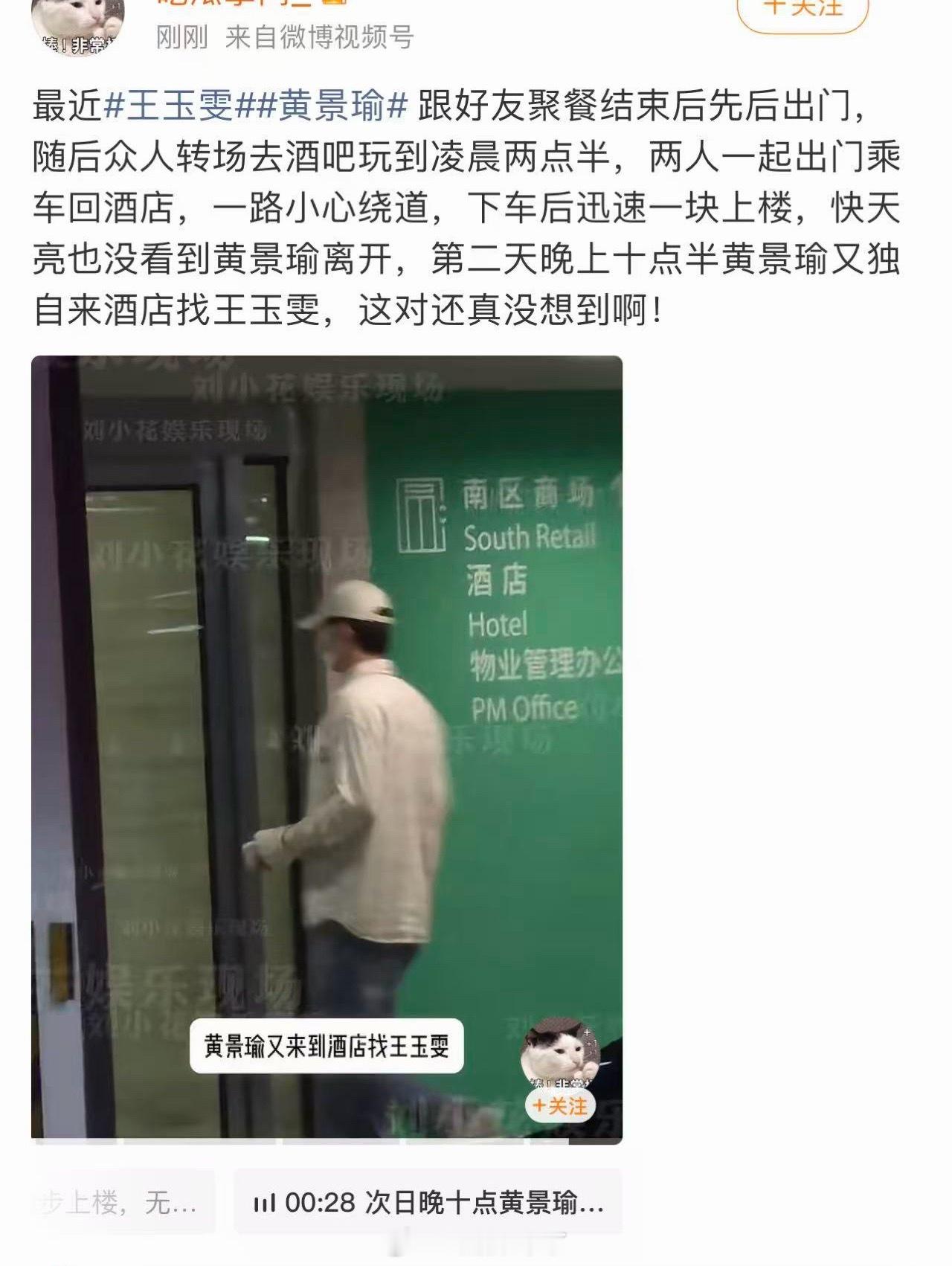 黄景瑜这个人很奇怪他前妻前几天锤他出轨张艺上的料,他不理会,今天跟王玉雯的绯闻