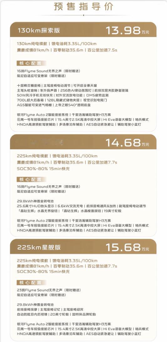 吉利银河两百万销量后的首款新车,这波真没悠着,能给到的全给到了,预售还有订金抵扣、免费音响等福利,挺夯的。【来自懂车帝车友圈】