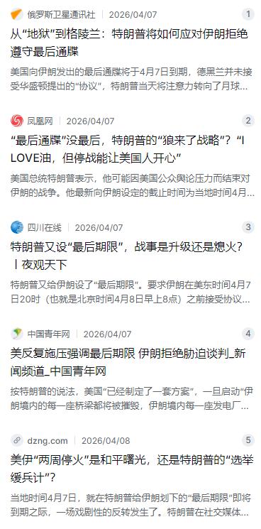 但熟悉特朗普套路的人都知道,这已经不是他第一次给伊朗设“最后期限”了。早在3月21日,他就要求伊朗48小时内开放霍尔木兹海峡,结果到了23日又把期限推迟了5天;3月26日再次延期10天;4月4日又警告“距离灾难降临只剩48小时”;到了5日又往后延迟了一天,把截止时间定在了7日晚上8点。前后改了四次,难怪有评论员调侃说特朗普的“48小时最后期限”变成了“82小时”。这种“狼来了”式的操作,确实让人摸不着头脑。