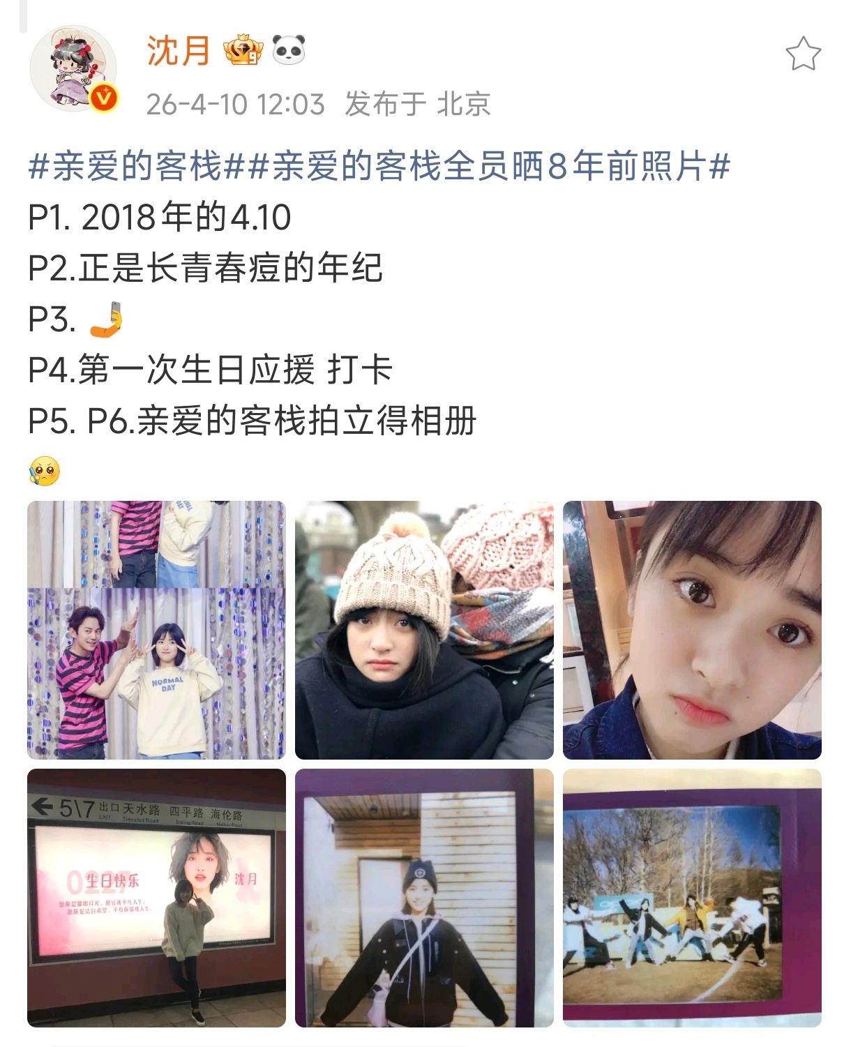 沈月晒8年前照片沈月分享了8年前也就是2018年的照片,那时候月月刚出道不久,眼神真的好稚嫩,图4完全就是大眼萌妹来的亲爱的客栈