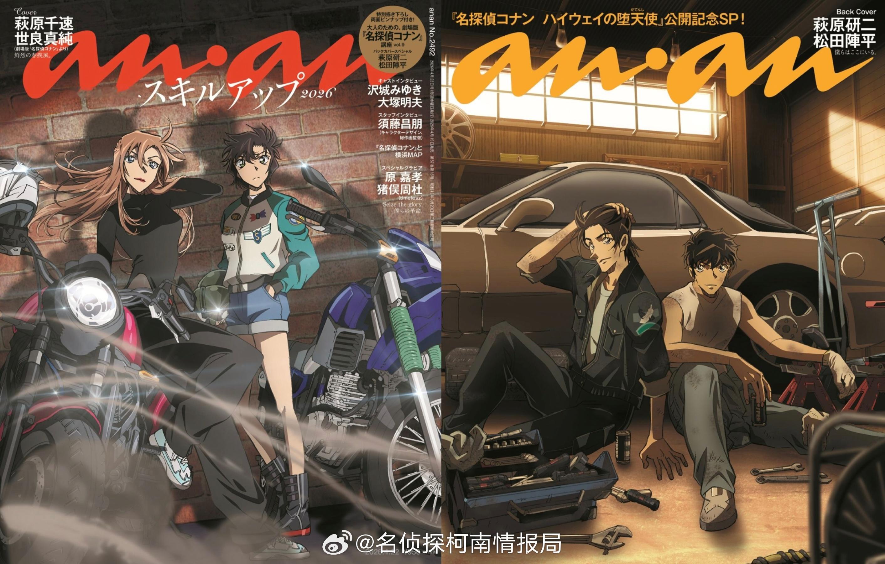 ✨【anan 最新杂志 表纸&背封解禁✨】将于4月15日发售的《anan》杂志,将以柯南M29《高速公路的堕天使》为主题打造超重磅封面企划!📸 正面封面:萩原千速 × 世良真纯 飒爽女骑手特辑!两位超人气女性角色同框,机车氛围感拉满,帅到犯规!📸 背面封面:萩原研二 × 松田阵平 亲友兄弟档!警校组的神仙同框,直接戳中粉丝DNA!本次特辑长达11页,还附赠精美海报!萩原姐弟联动封面!名侦探柯南