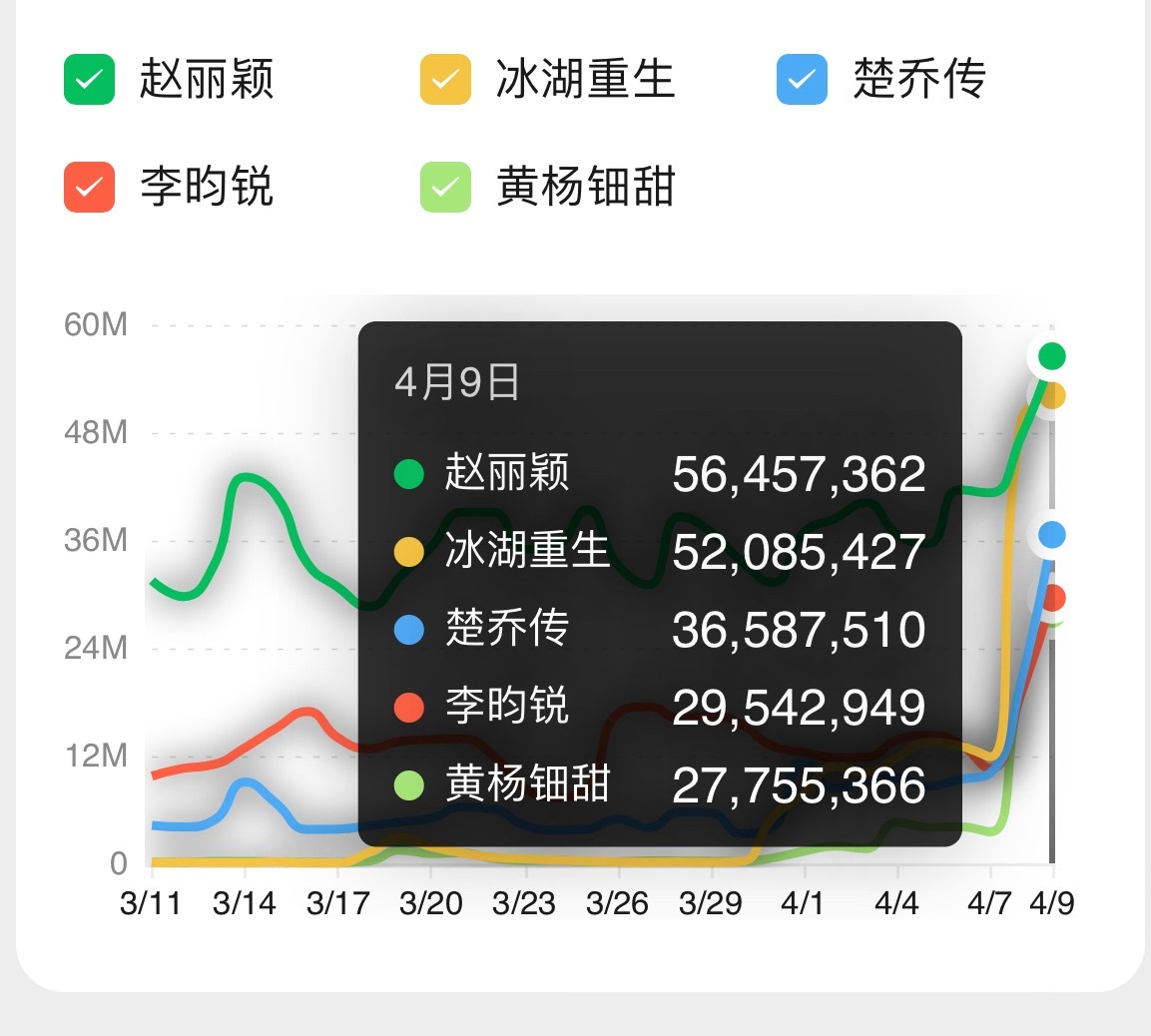 卧槽,真不行了,这像话吗?赵丽颖个人比《冰湖重生》整个剧热度都大还带动了星玥和燕楚两对cp回忆杀云合给你个机会单独夸楚乔传❗️