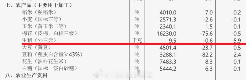 国家统计局公布的3月下旬外三元生猪价格更低,已经到了9.5元/公斤,较3月中旬再跌5.9%。