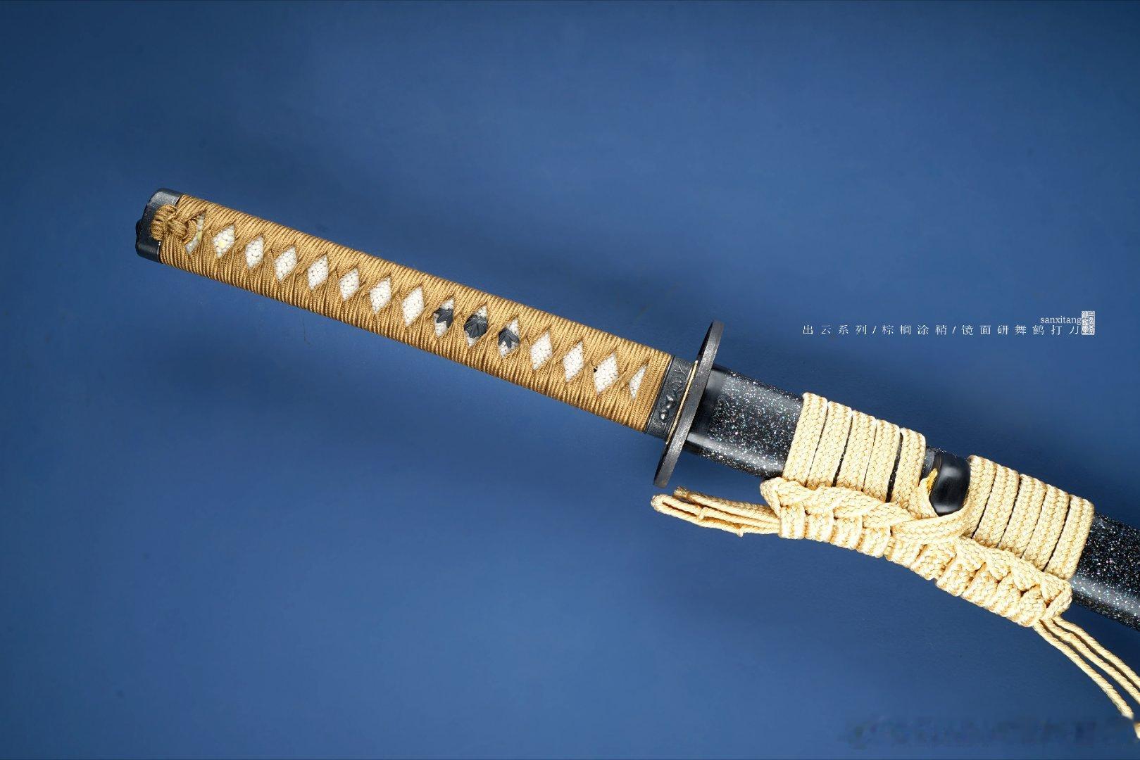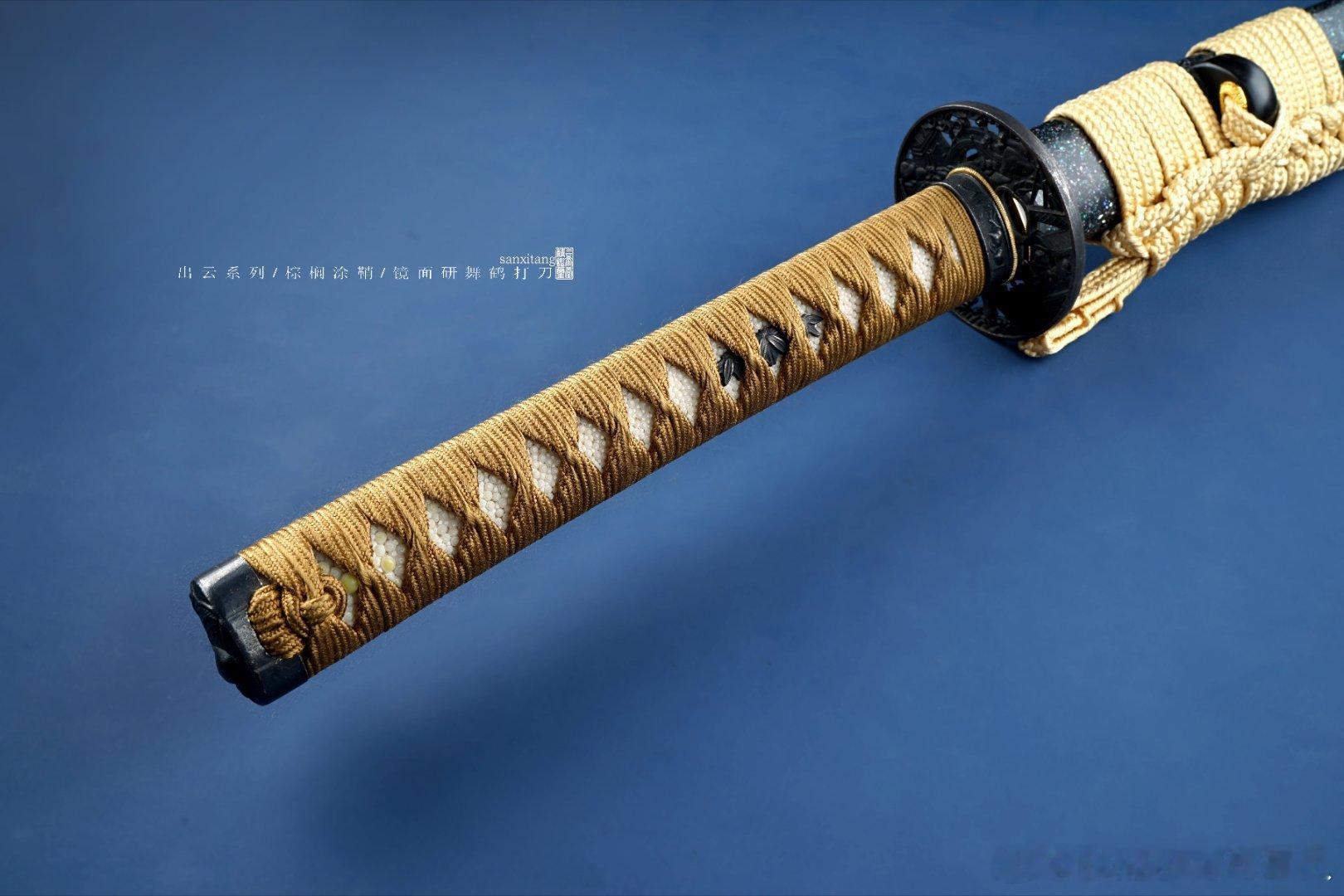 刀具控 舞鹤打刀今天上一只星空版的,折叠锻打8000余层高碳钢,覆土烧刃,核心的镜面研工艺,柔顺细腻,日本进口真丝柄卷+大颗粒珍珠鱼皮