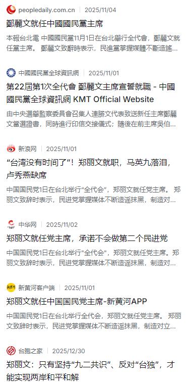 2025年10月,郑丽文在国民党主席选举中胜出,台湾政坛的格局就此改写。她上任后干的头一件大事,就是在2025年11月的一场公开研讨会上,面对全台湾民众放下狠话:“开创台海百年和平,不达目的绝不罢休。”这话一出,岛内震动。要知道,在过去几年里,台海局势被民进党当局搅得风高浪急,两岸官方交流几乎全面停摆,兵凶战危的阴云一直笼罩在台湾海峡上空。郑丽文这番表态,等于是在最敏感的时刻,给台湾社会打了一针强心剂。