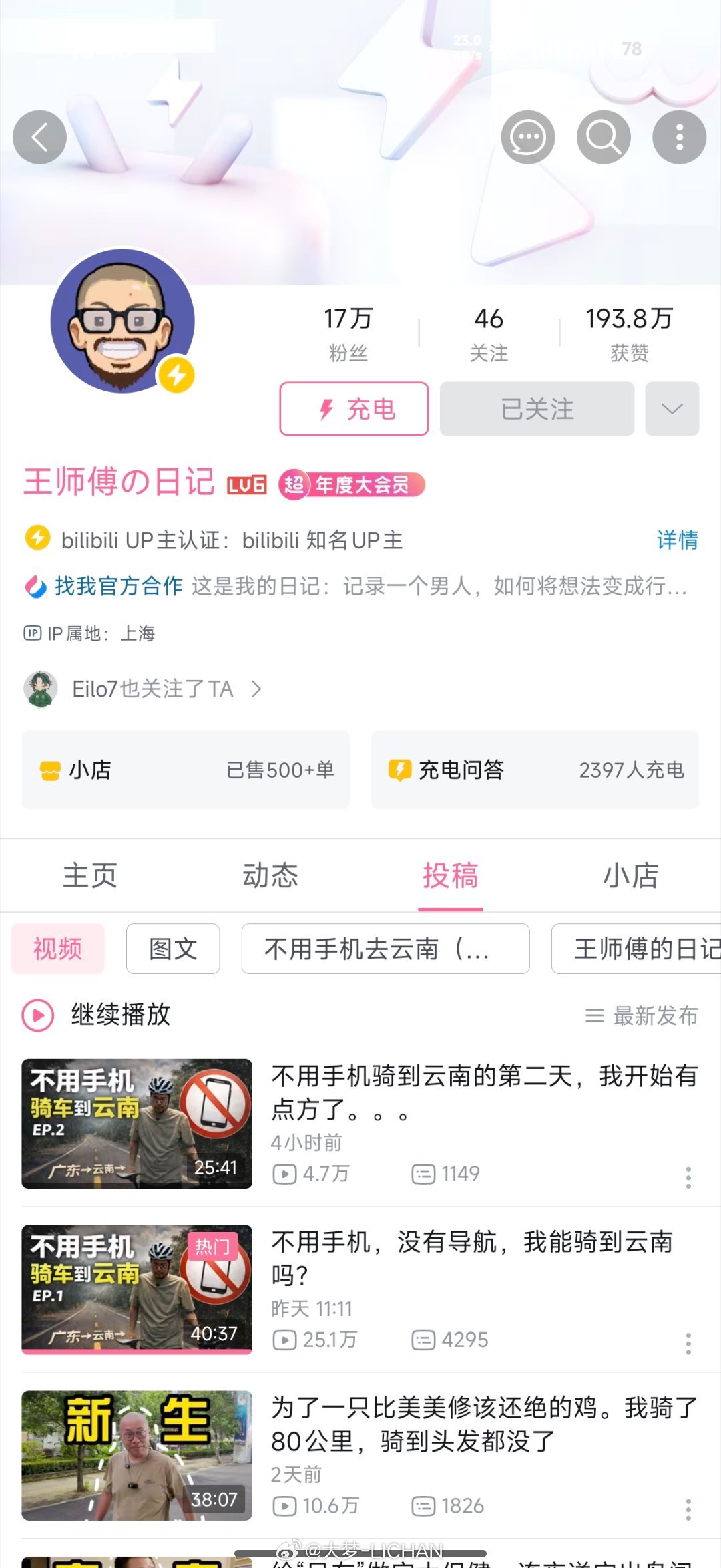 而且王师傅从炉石主播干到美食博主再干到现在的日记博主,我是一直在关注,我感觉整个行业里面也很难找到他这样的人,其它的不谈,他这个人确实内驱力很强,学习力也很强。