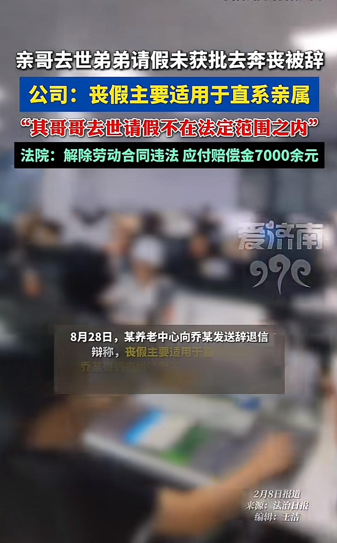 公司说丧假适用于直系亲属,乔某请假不在法定范围,还影响工作。但乔某也是没办法啊,谁能眼睁睁看着亲哥走而不回去。法院审理后会怎么判呢?我觉得公司这么处理有点不近人情,毕竟亲情不能用条条框框来限制。