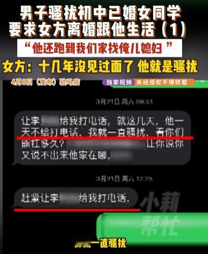 这事说出来没人不觉得荒唐,一个20岁的年轻人,盯上十几年没见过面的初中女同学,还逼着人家离婚,被拒绝后就疯狂骚扰女同学的母亲,简直离谱到了极点。