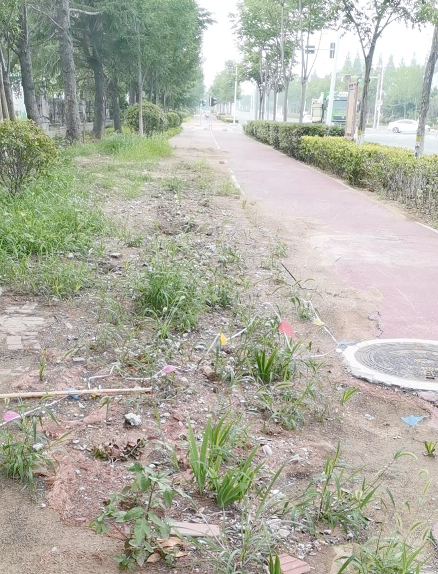 经官渡区住房和城乡建设局核实,该处为金月路,该道路由地产代建,由于地产受资金问题影响,已无力承担养护费用,当前道路主要依靠周边物业管理,为缓解周边住户出行压力,目前最低仅保证通行条件。下一步,官渡区住房和城乡建设局将持续督促地产筹措专项绿化管养资金,待专项绿化管养资金到位将尽快完成绿化补种并积极推进相关移交工作。