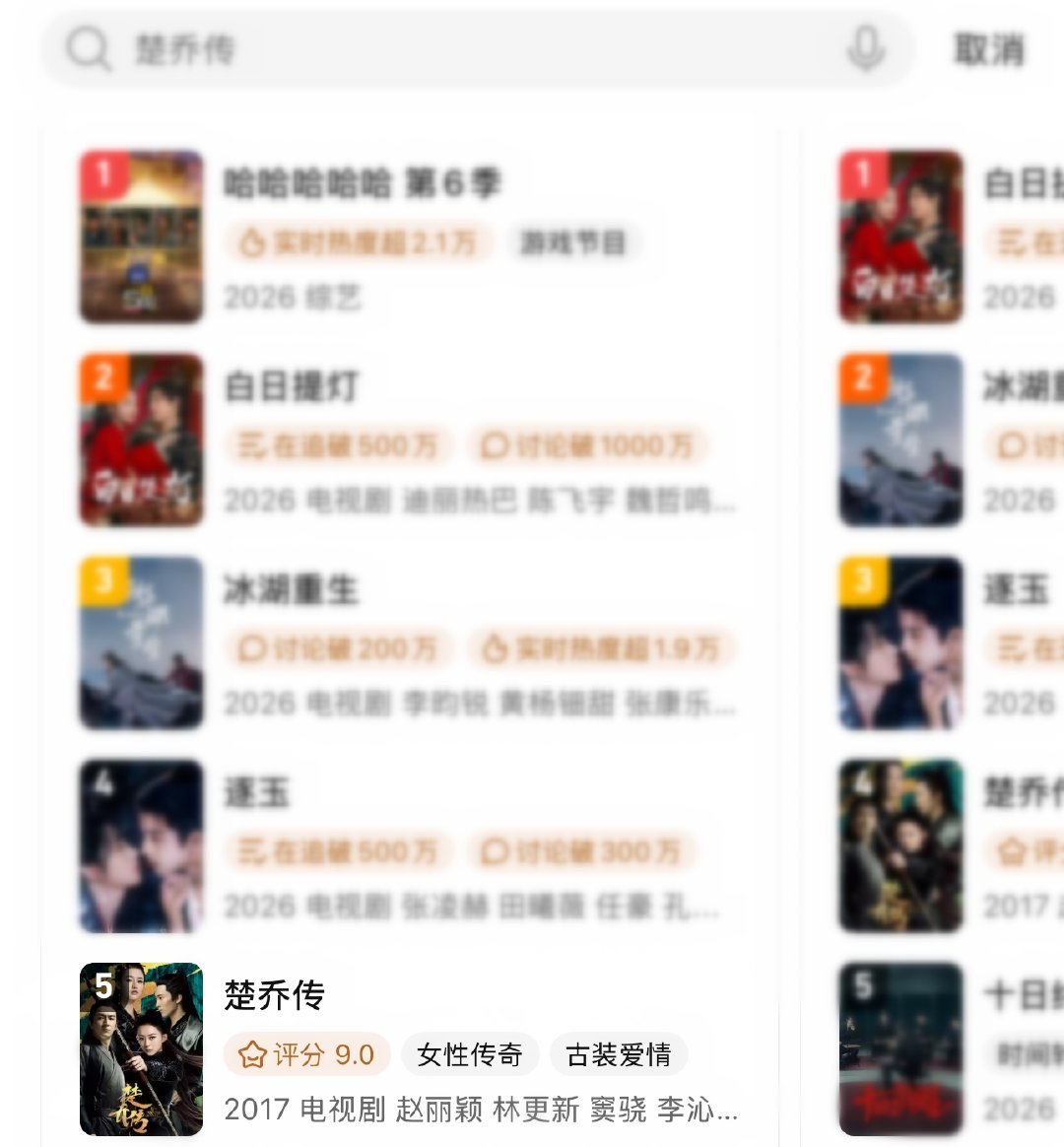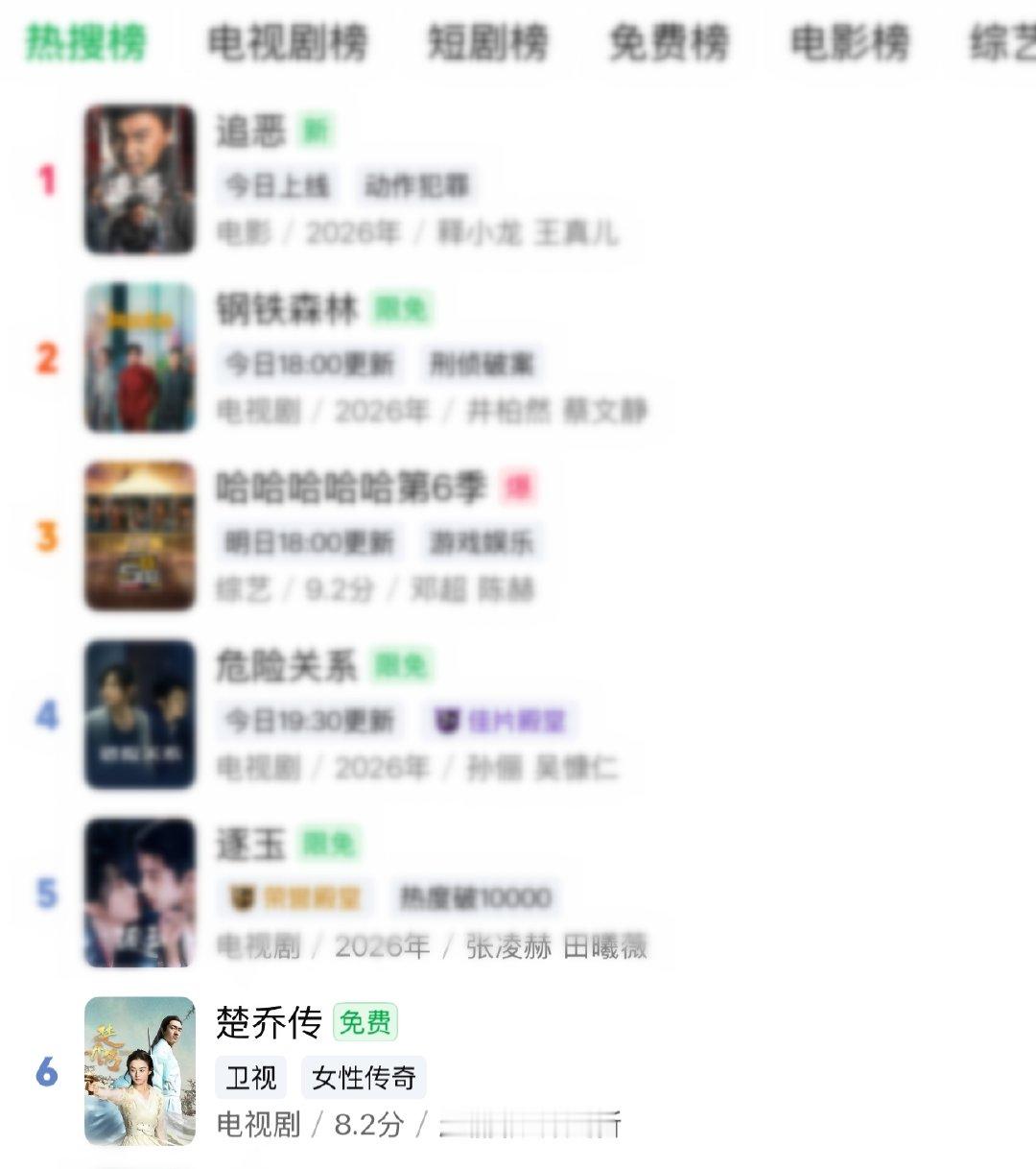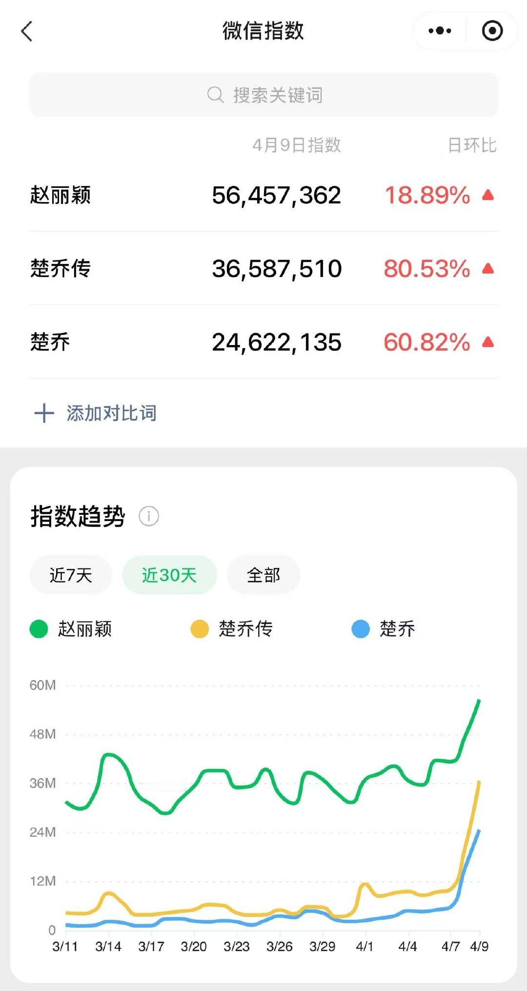 赵丽颖 楚乔传 百指破万,爱奇艺腾讯站内热搜总榜双前六,微指持续上涨,云合来到第