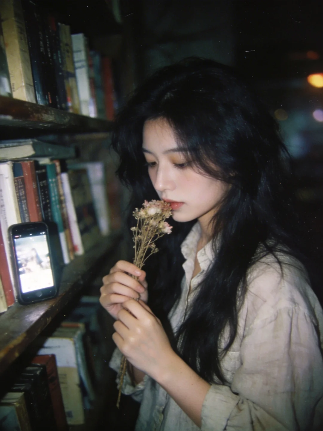 看书拍照两不误 挑战复古感 复古胶片 复古写真 在书店照亮阅读的你 那些胶片带来的氛围感 故事感 ai写真