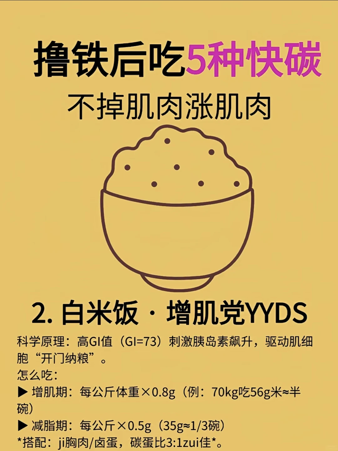 撸铁后吃5种快碳 不掉肌肉嘎嘎涨肌肉💪