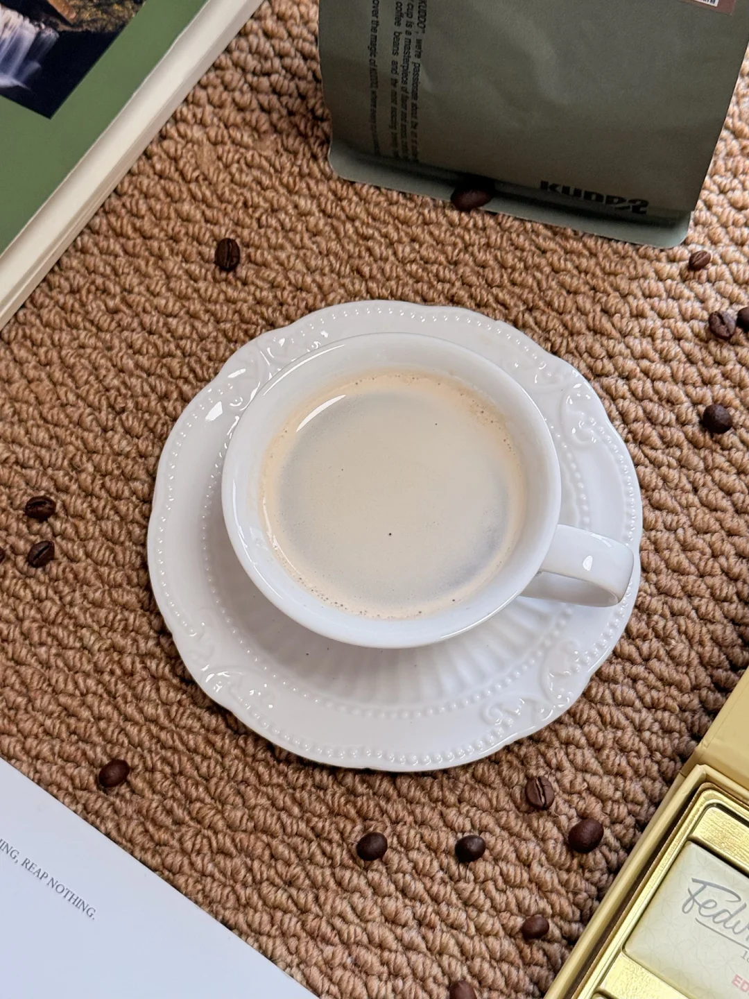 用新买的KUDDO黄油可可豆冲了杯美式,配上一块60%的黑巧克力。