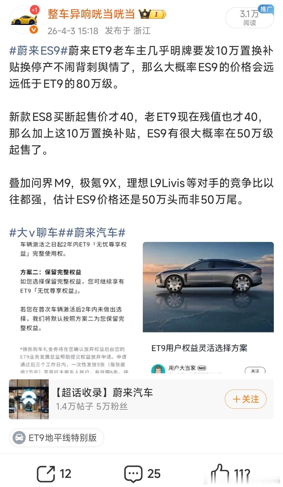 大v聊车蔚来ES9