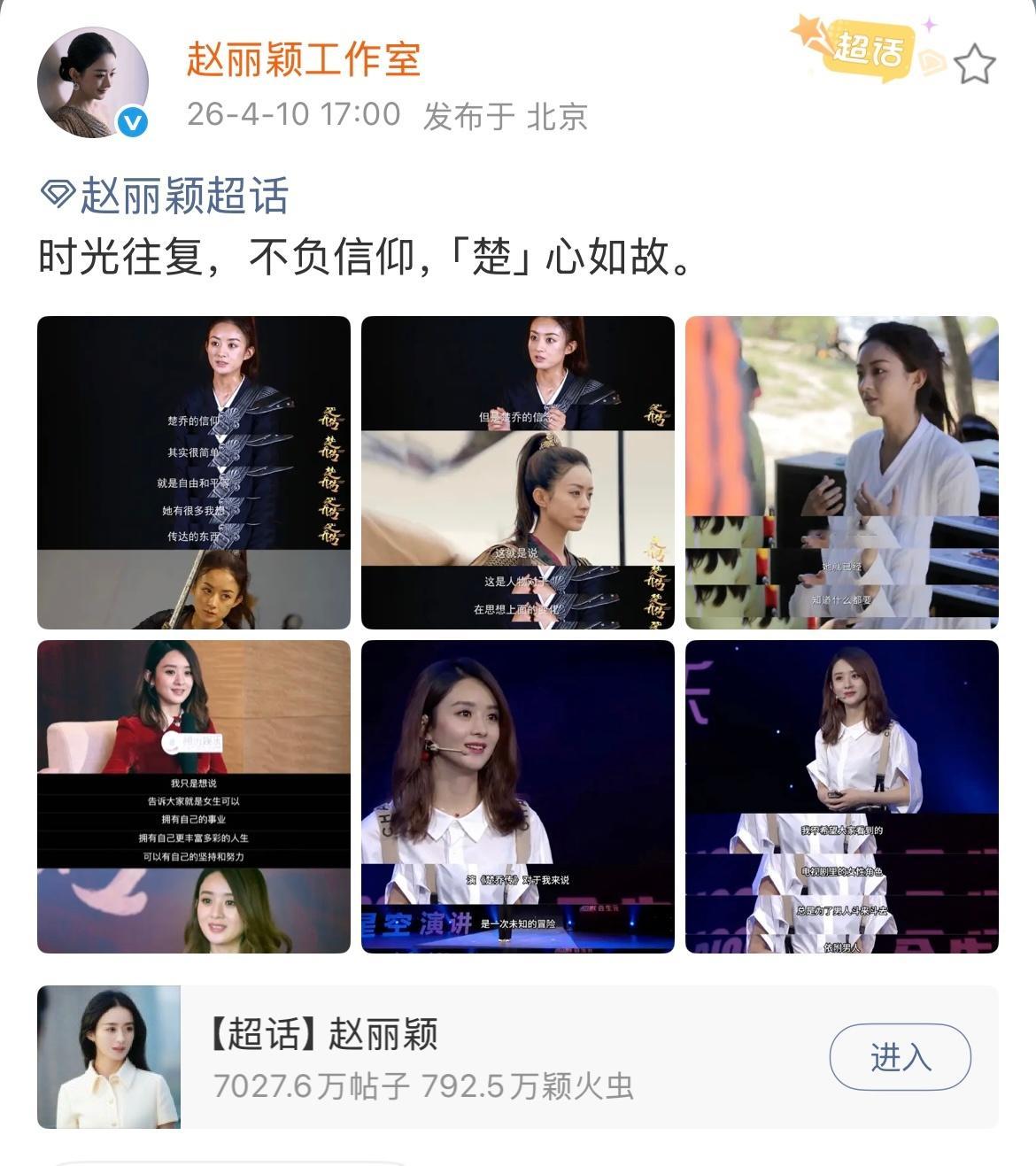 赵丽颖谈楚乔角色意义 赵丽颖工作室发赵丽颖对楚乔理解赵丽颖工作室发布赵丽颖谈楚乔